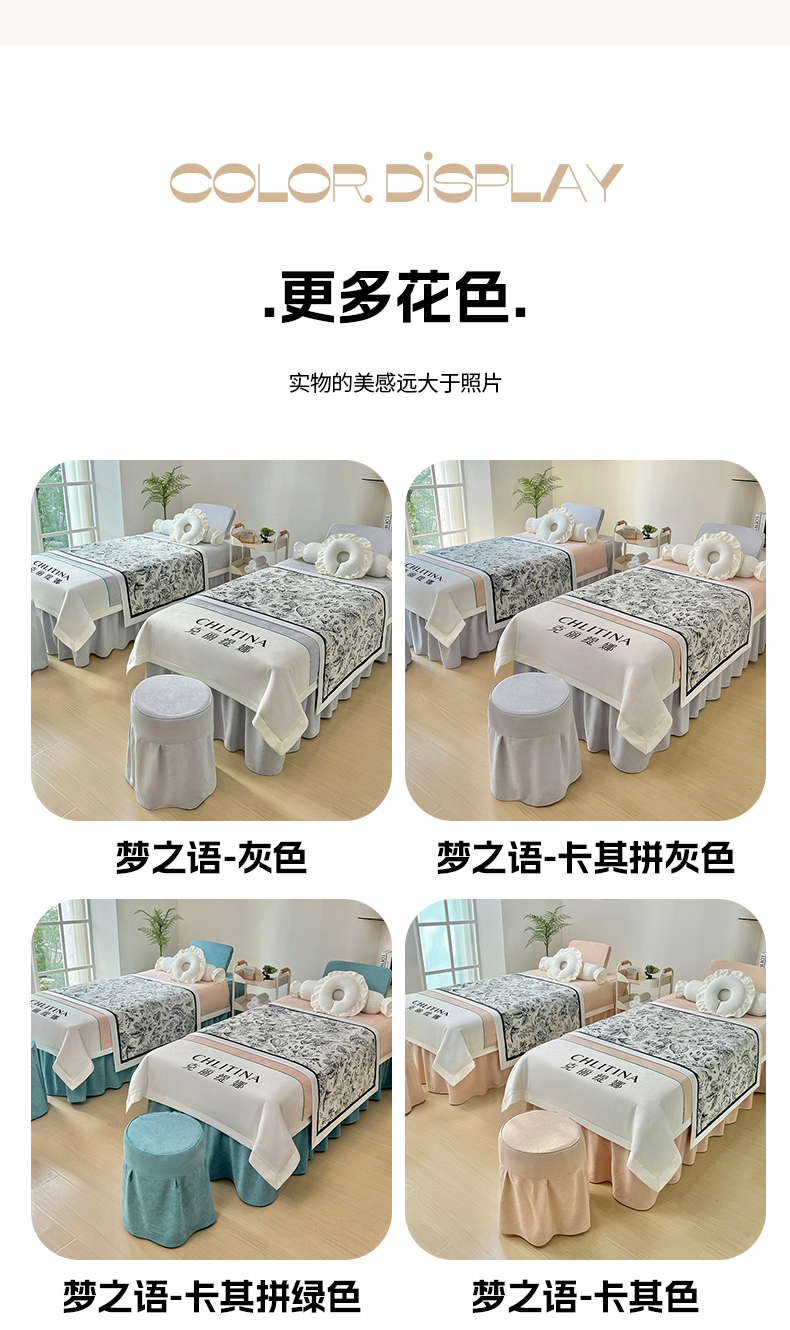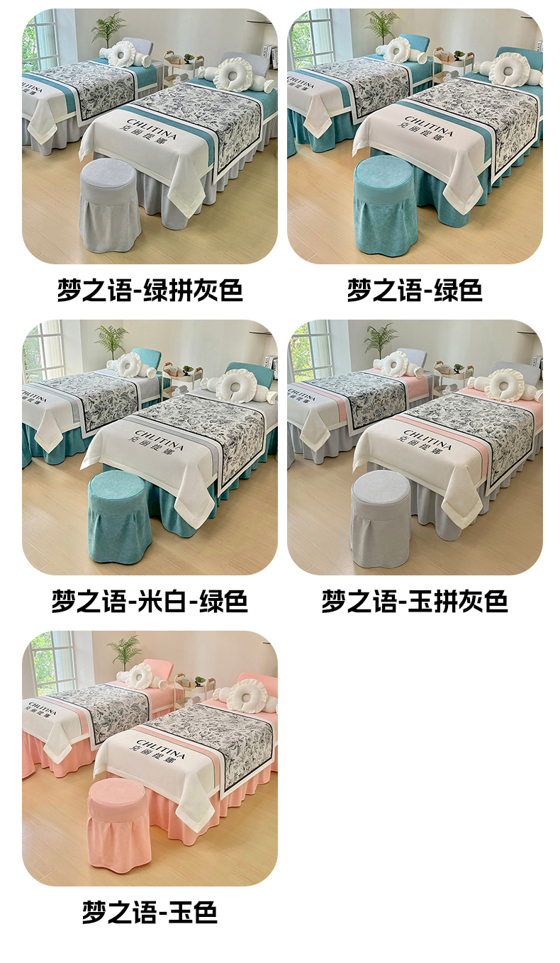 (总)不打烊家纺 2025新款贡棉美容床罩印花款-梦之语(支持logo定制),梦之语灰色拼绿色,梦之语灰色,梦之语卡其色拼灰色,梦之语玉色,梦之语玉色拼灰色,梦之语卡其色,梦之语绿色拼灰色,梦之语绿色,梦之语卡其色拼绿色