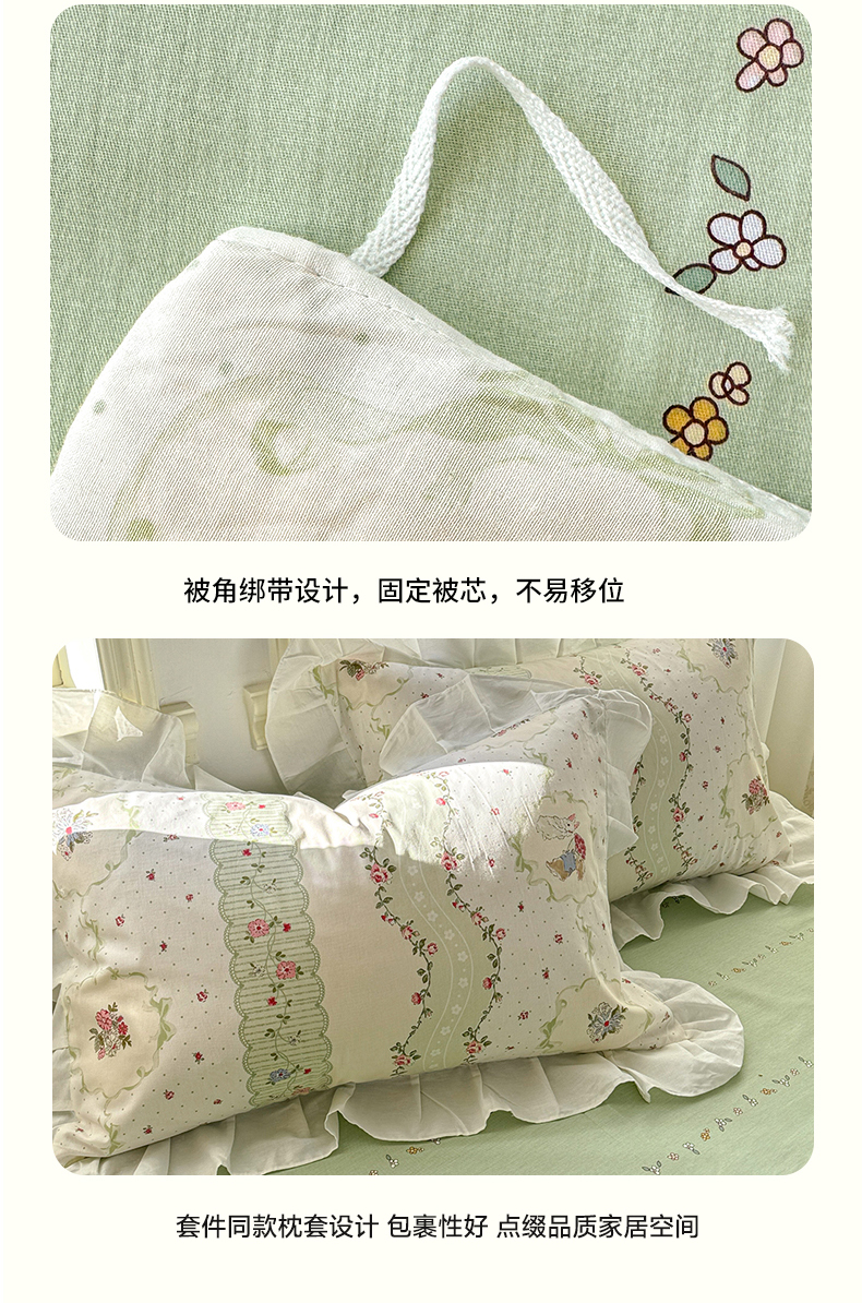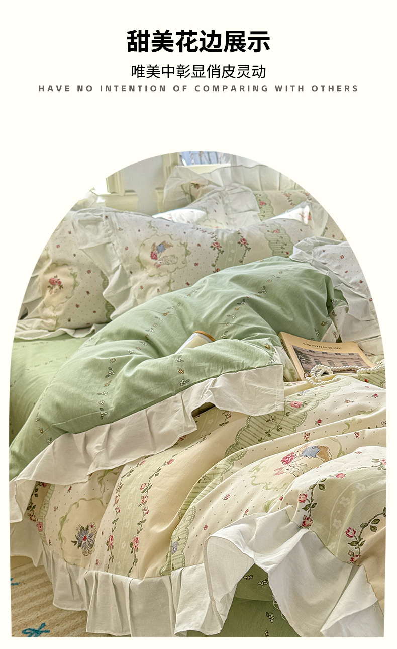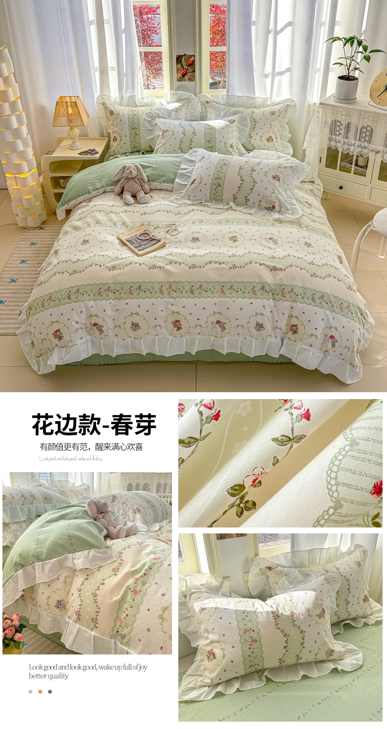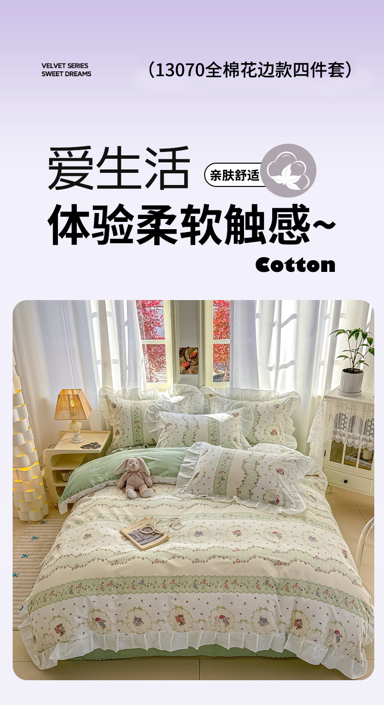 商品名称:2025沐辰家居-新款全棉13070全棉花边款套件 花边款-春芽