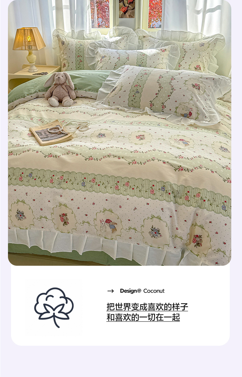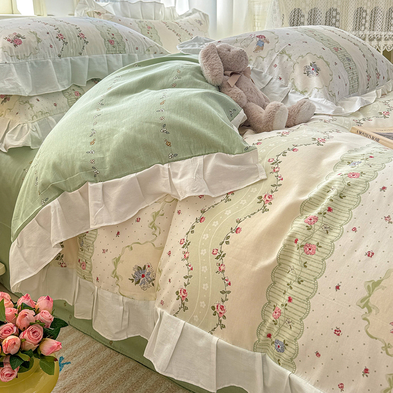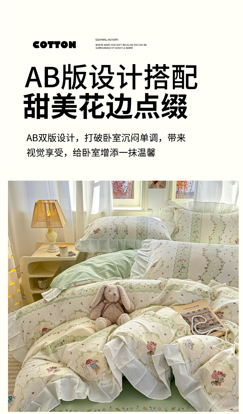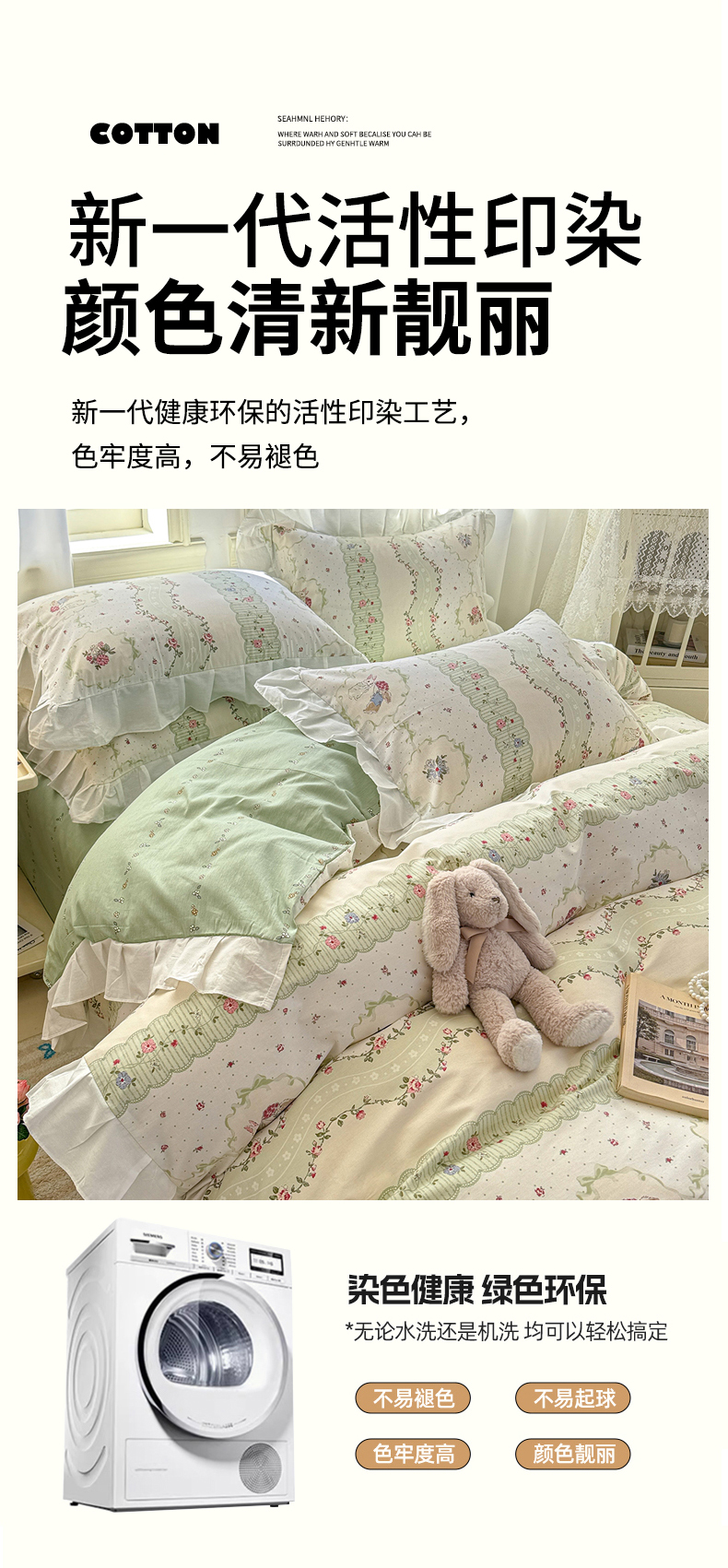 商品名称:2025沐辰家居-新款全棉13070全棉花边款套件 花边款-春芽