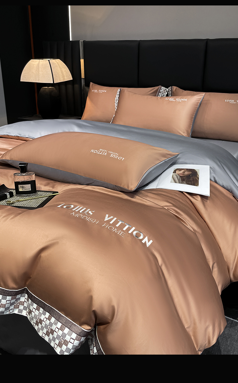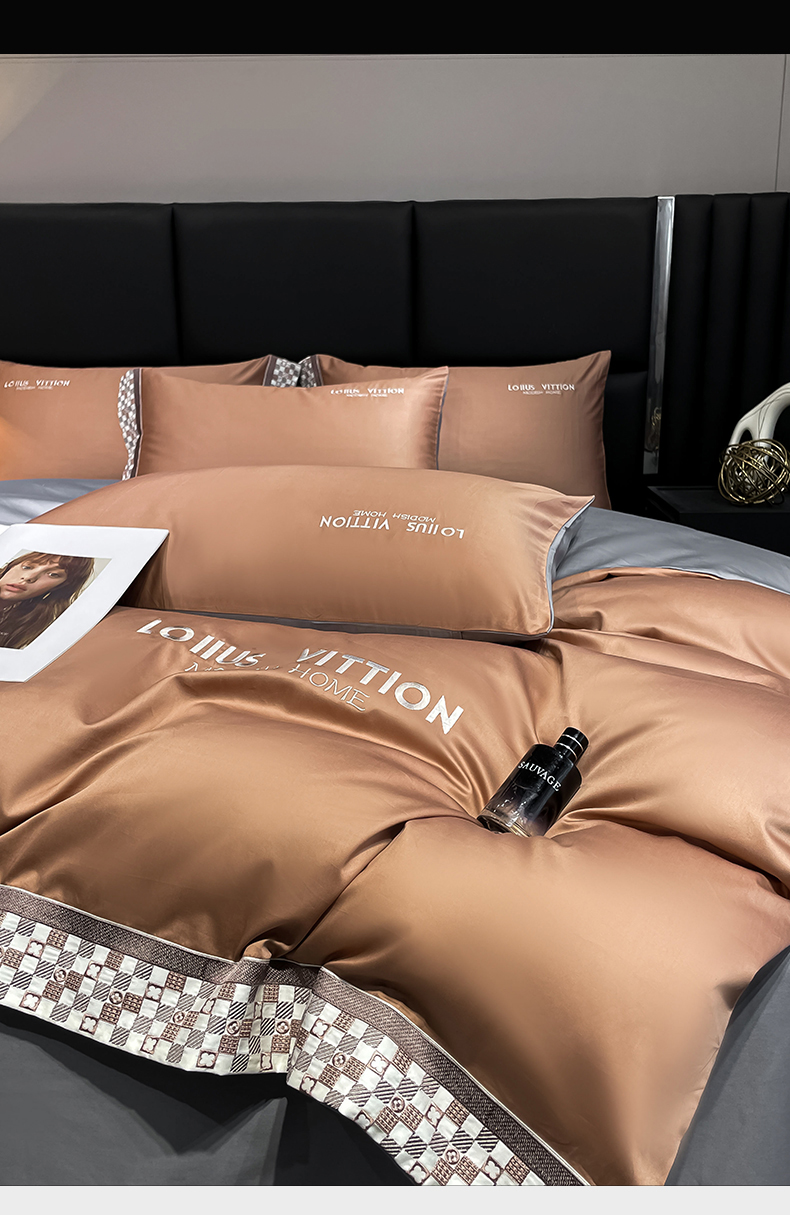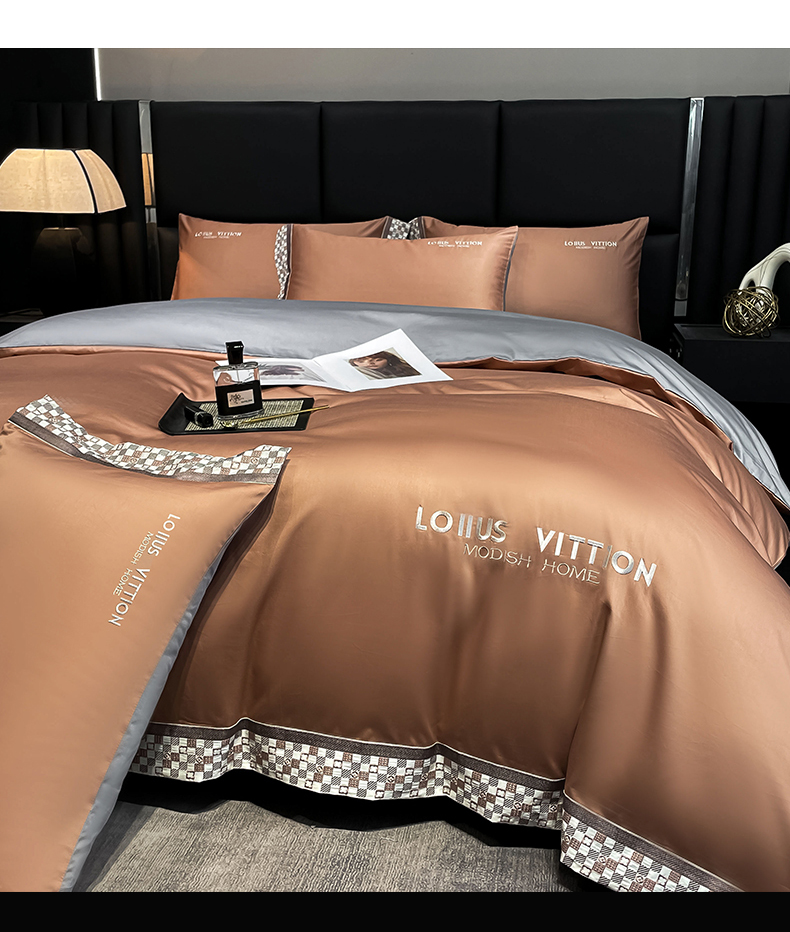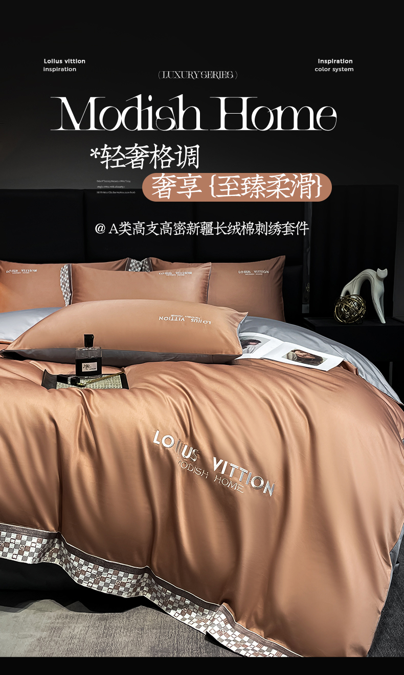 (总)瑞驰家纺 2025新款长绒棉绣花莱桉系列四件套,莱桉-贝壳白,莱桉-朵拉灰,莱桉-驼褐,莱桉-棕橙