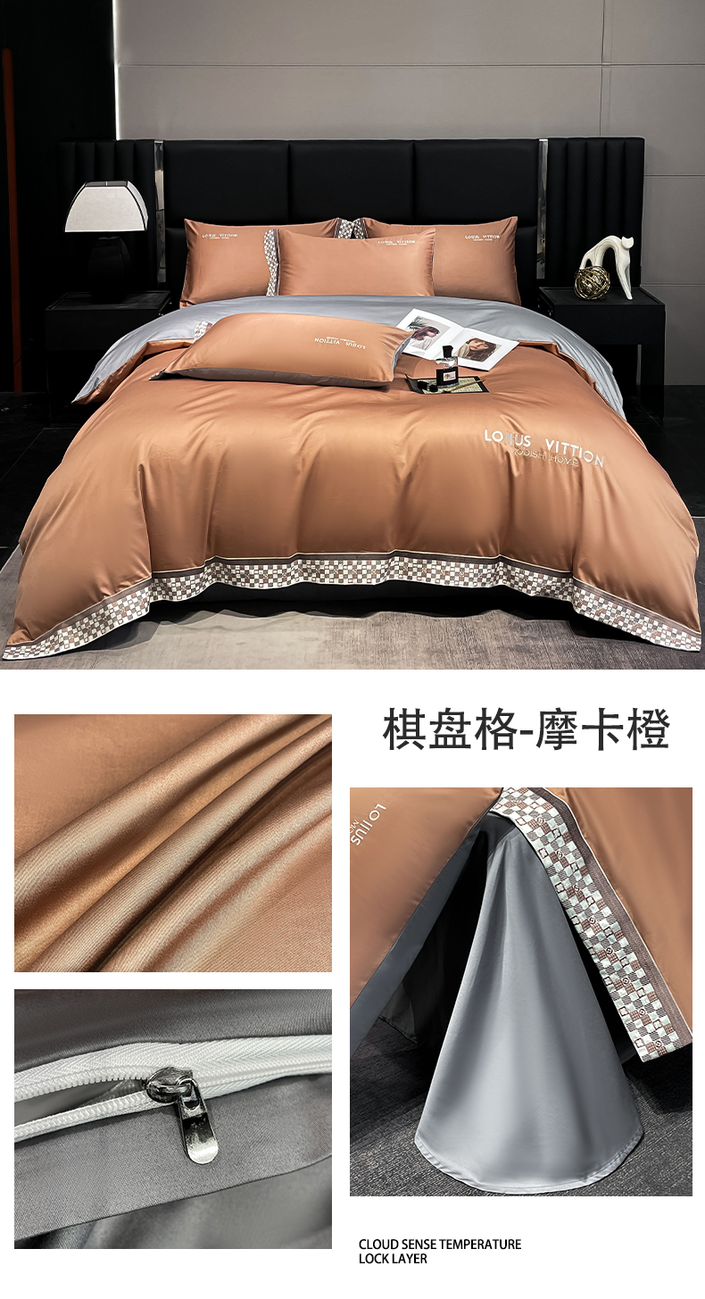 (总)瑞驰家纺 2025新款长绒棉纯棉绣花四件套-棋盘格系列,棋盘格-高级灰,棋盘格-米黄咖,棋盘格-摩卡橙,棋盘格-中咖