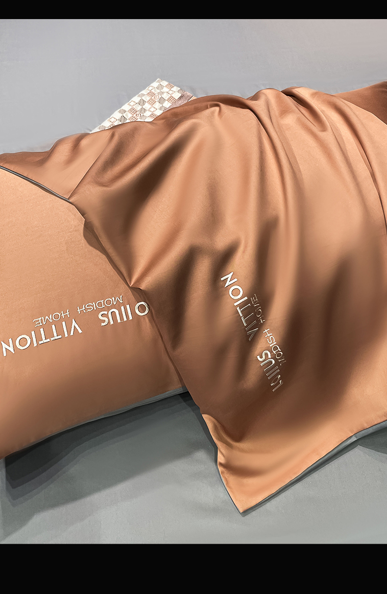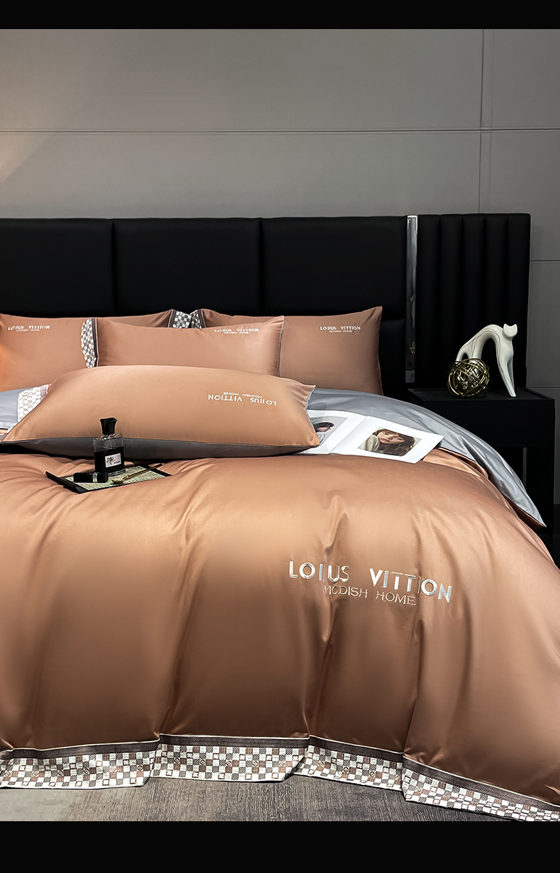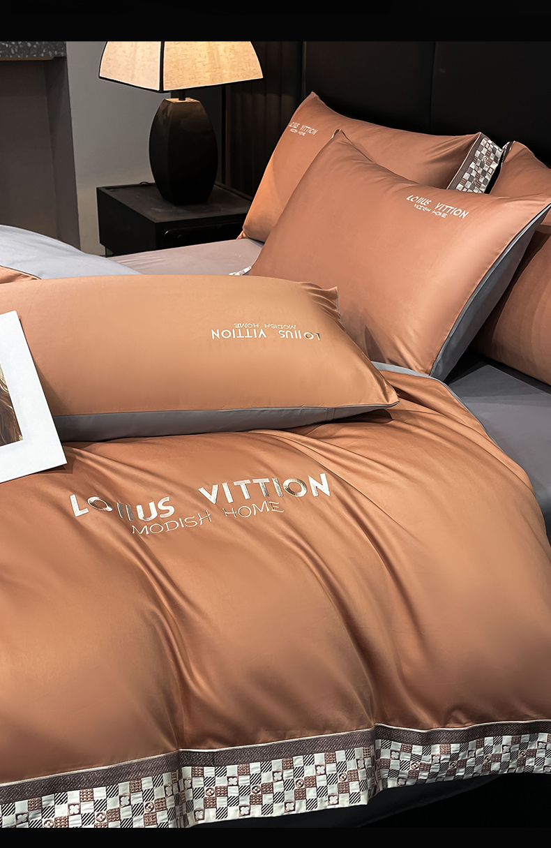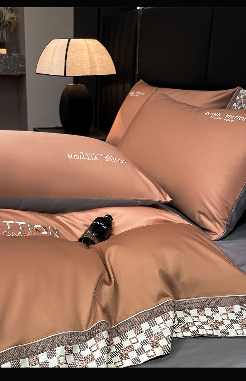 瑞驰家纺 2025新款长绒棉绣花棋盘格系列四件套 棋盘格-摩卡橙