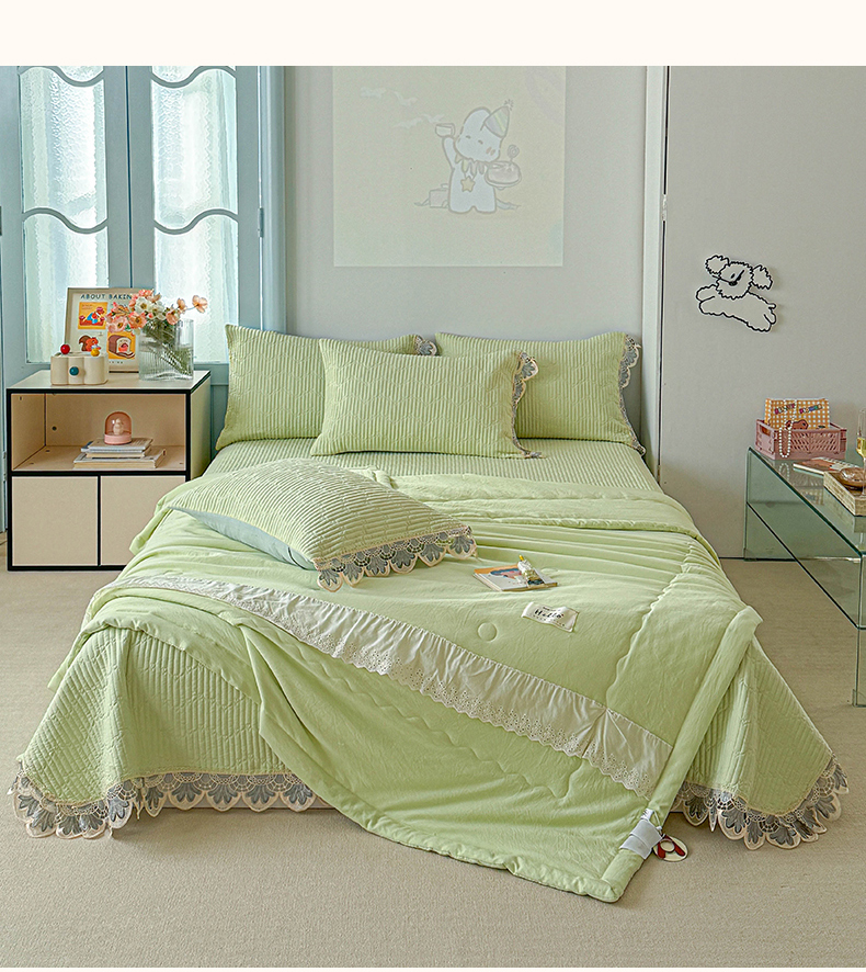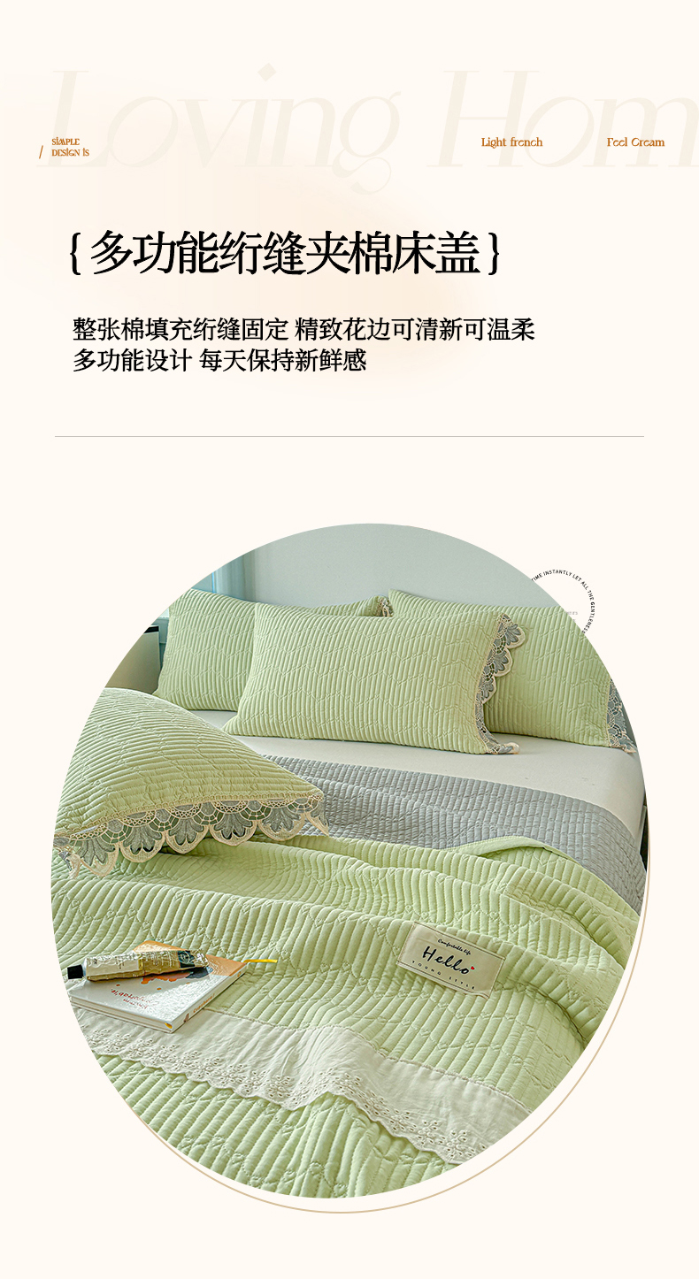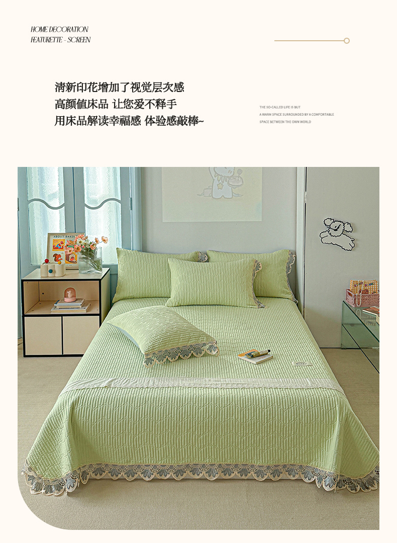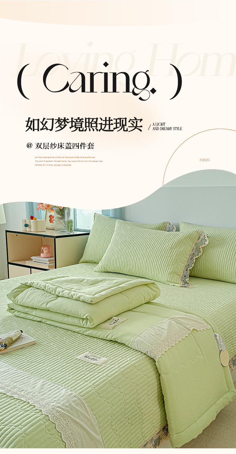 • 91家纺网 家纺一手货源 找家纺 源舜家纺 2025双层纱床盖三件套夏被四件套 草绿