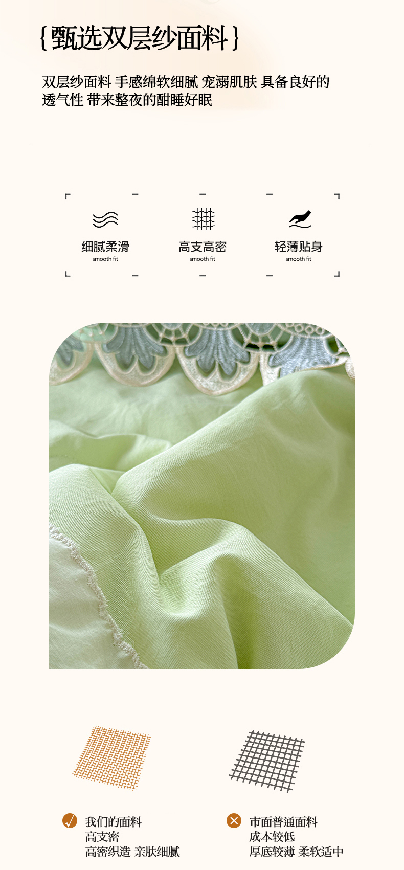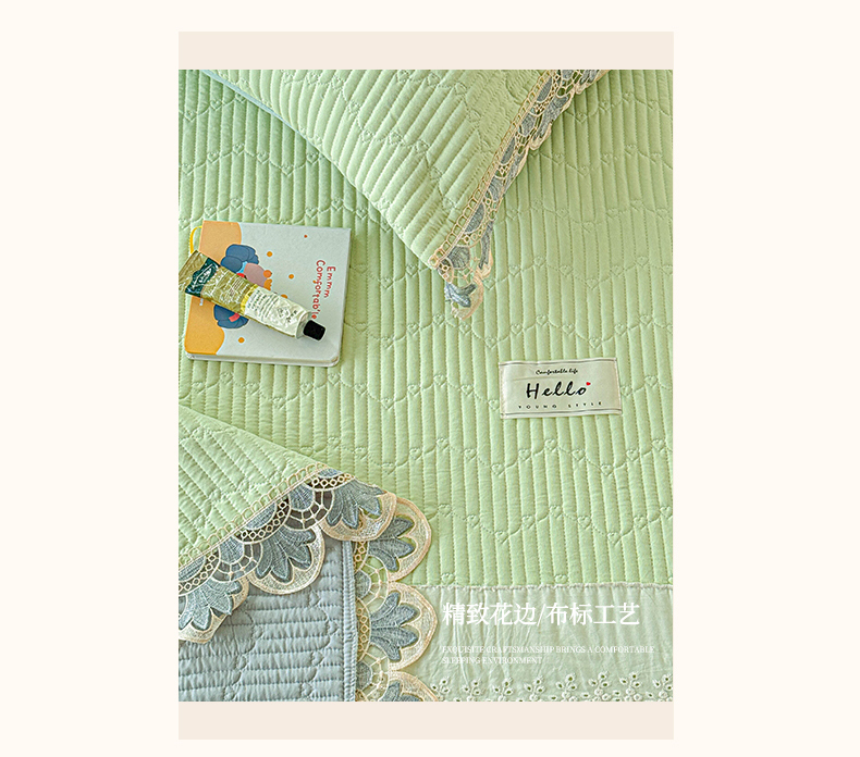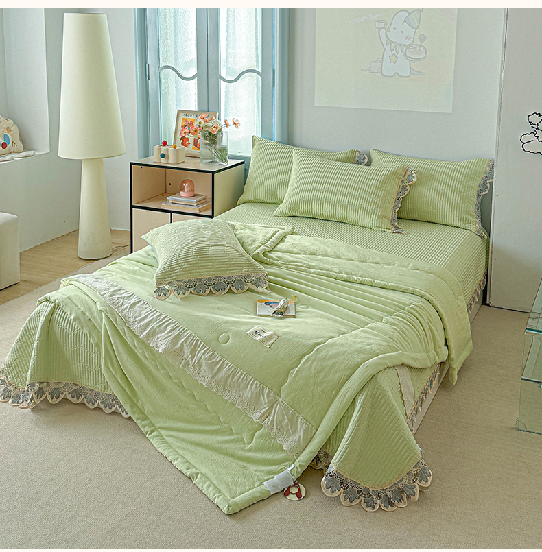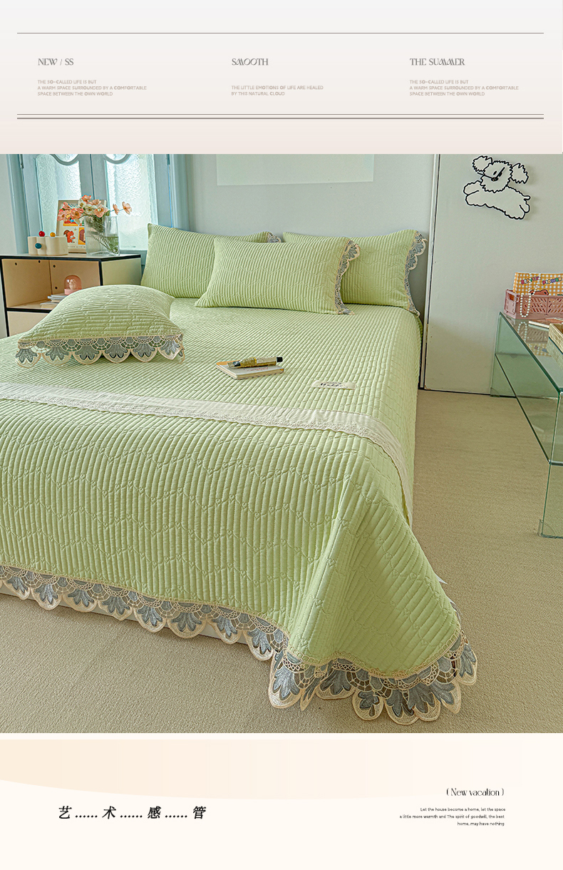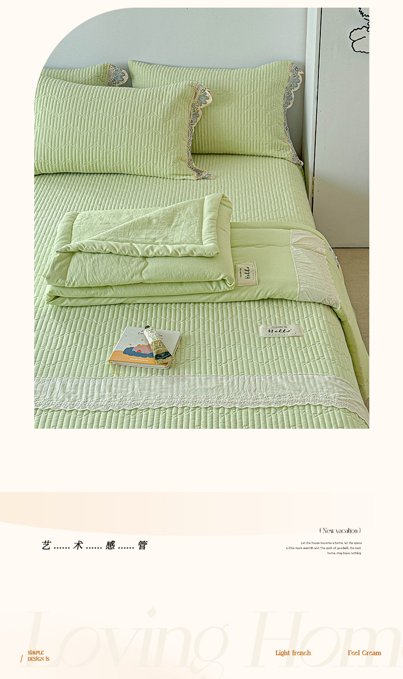 • 91家纺网 家纺一手货源 找家纺 源舜家纺 2025双层纱床盖三件套夏被四件套 草绿