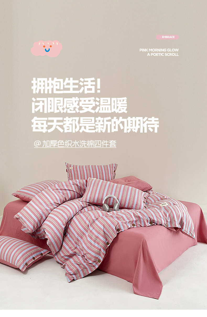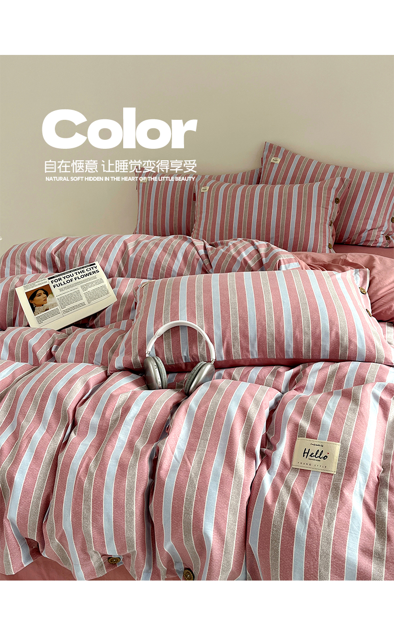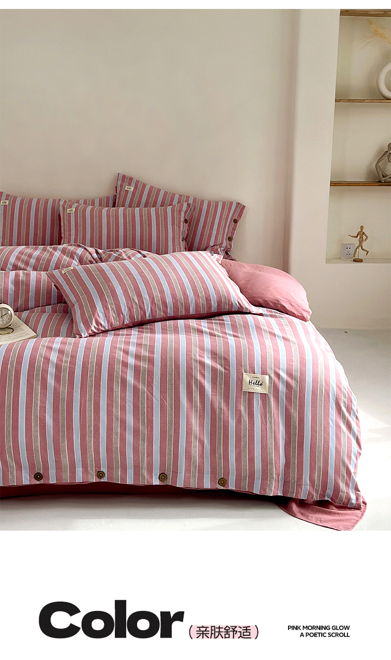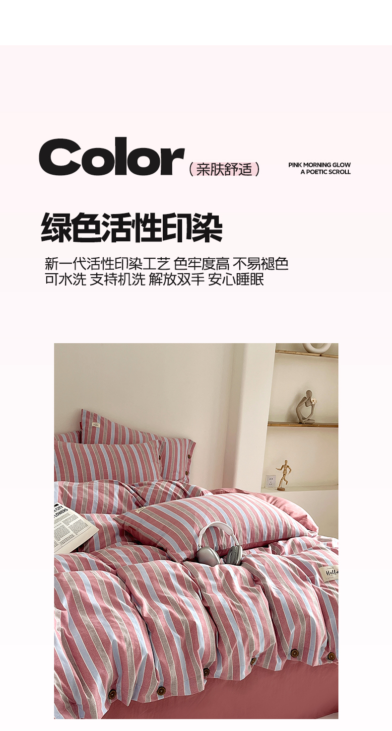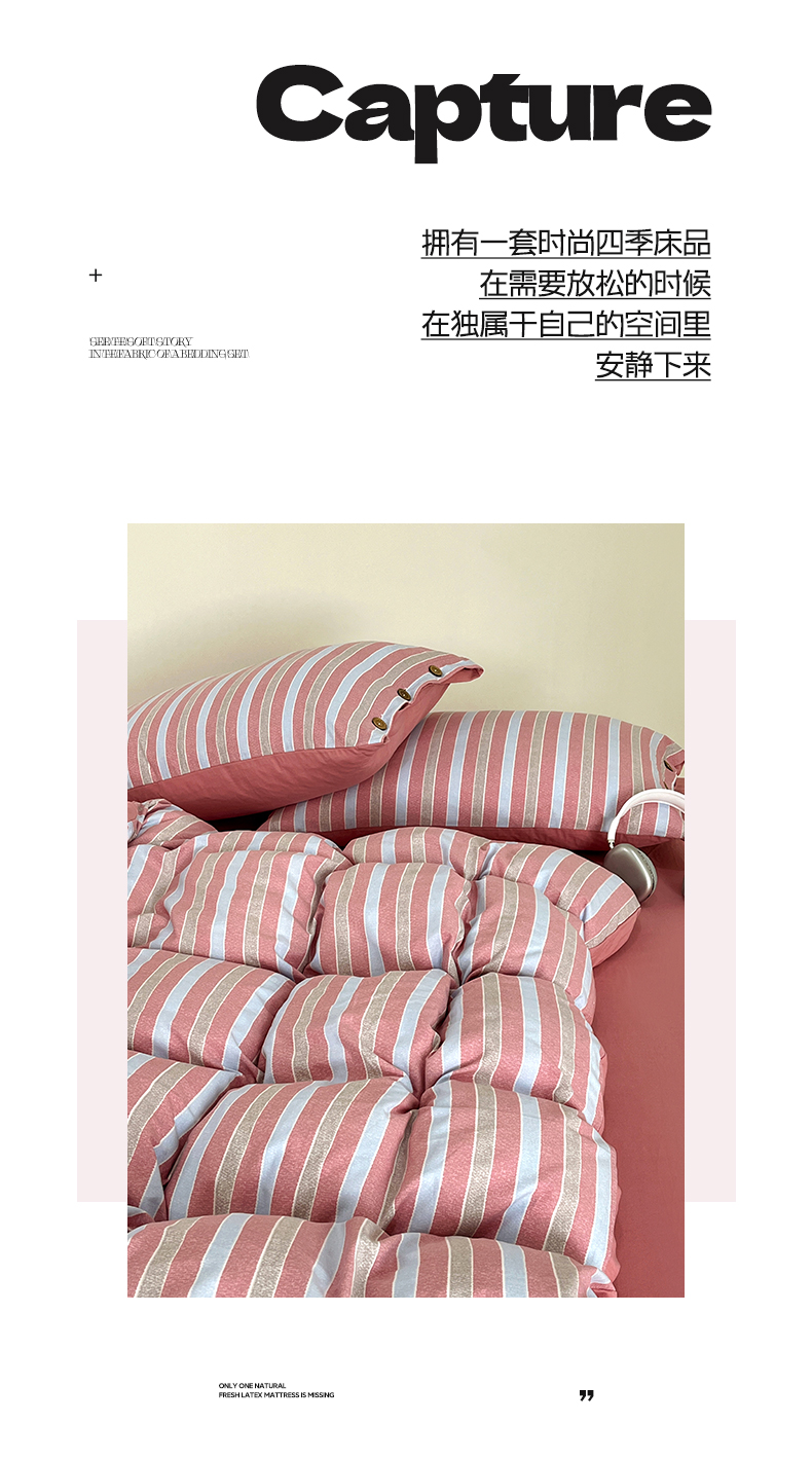 商品名称:睡美美 2025新款加厚色织水洗棉印染条纹四件套 加州树莓