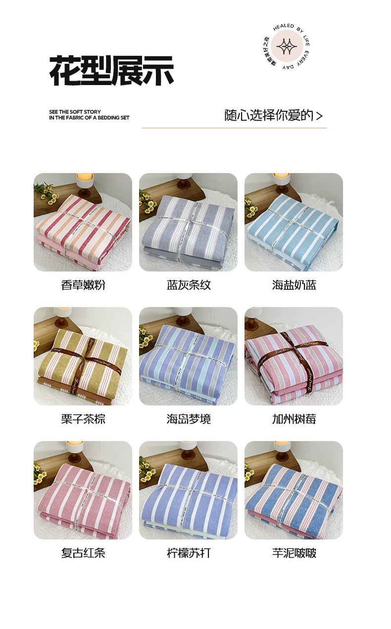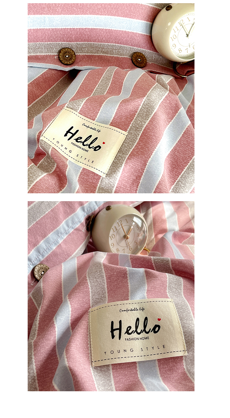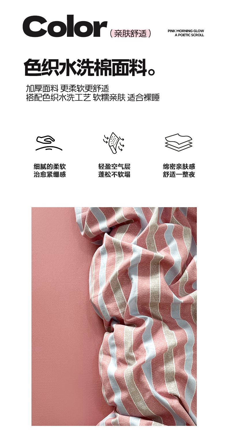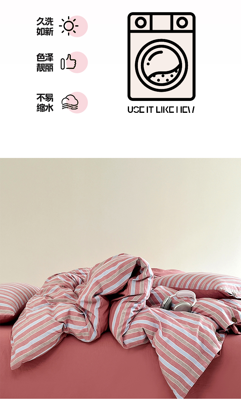 商品名称:睡美美 2025新款加厚色织水洗棉印染条纹四件套 加州树莓