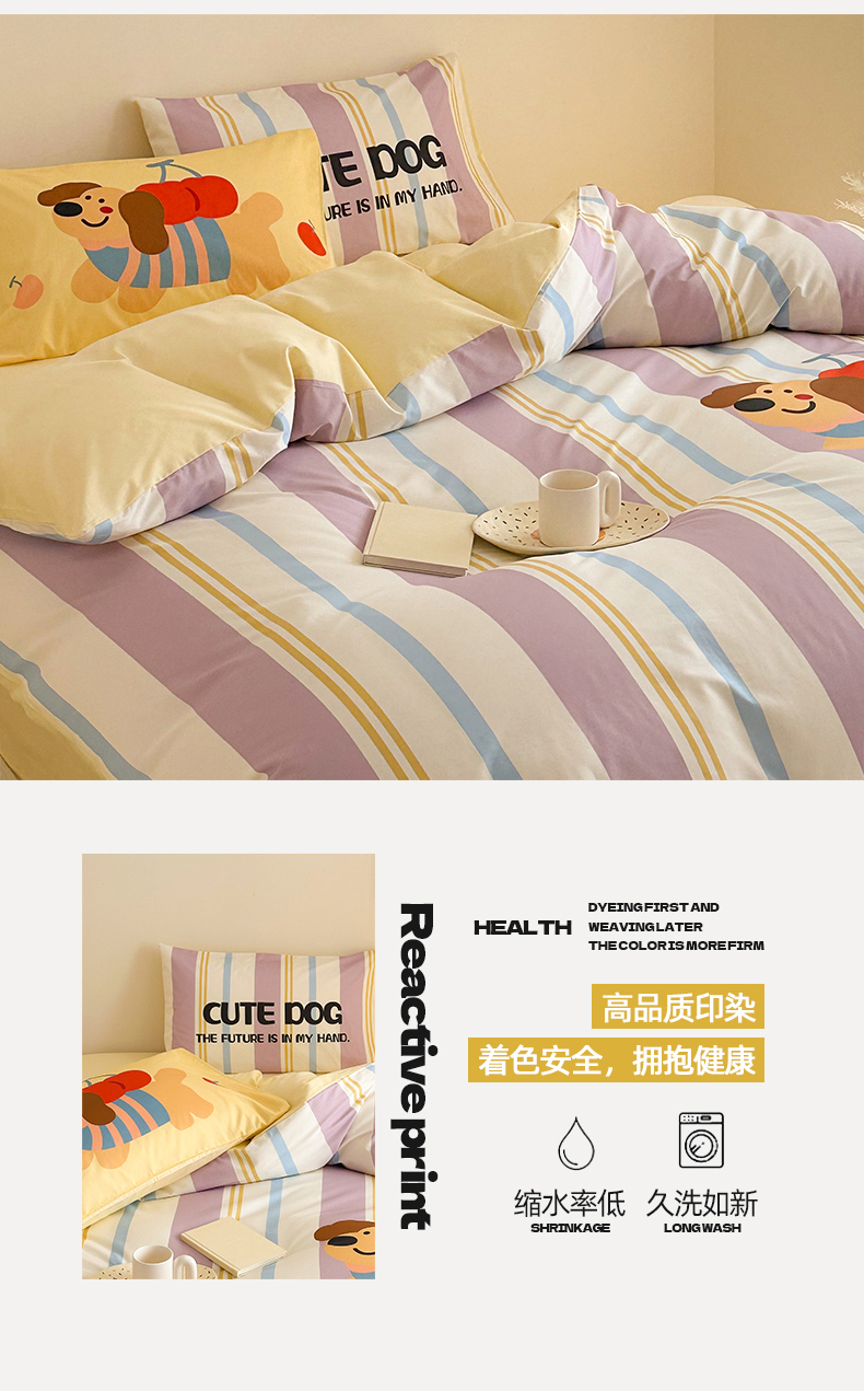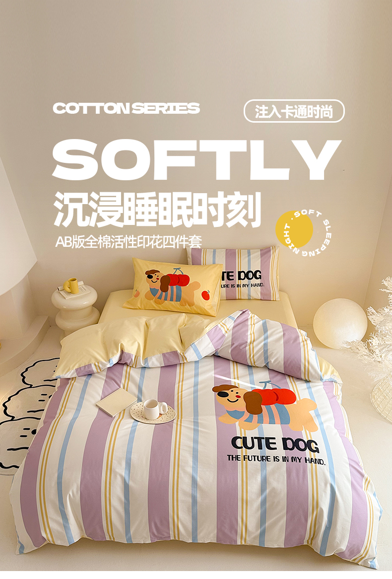 当前位置: 91家纺网 > 商品网购 > 床品套件 > 四件套 > 全棉活性四件套 > 典曼家纺 2025新款 AB版活性印花四件套 可爱小狗(紫)