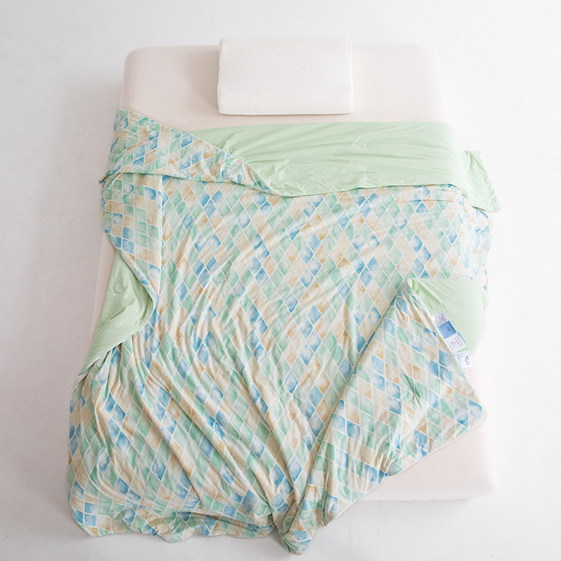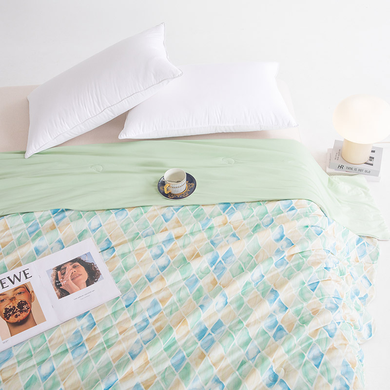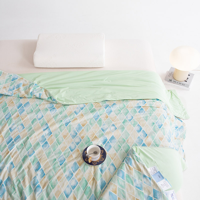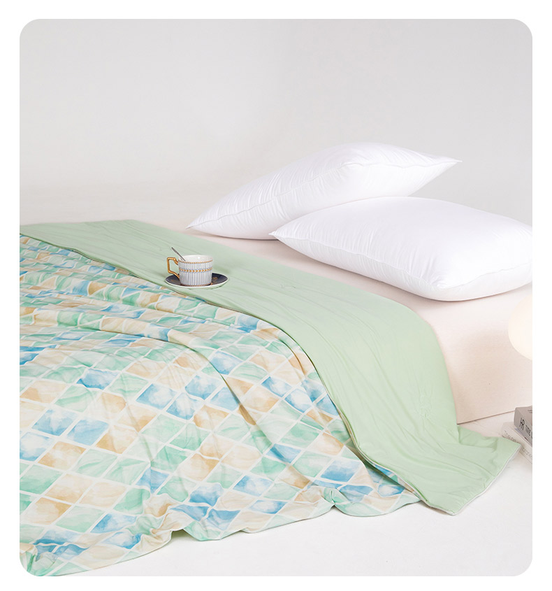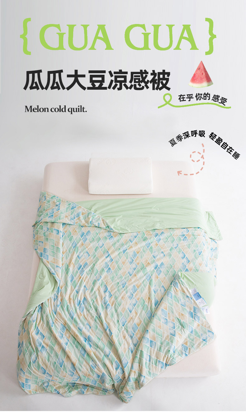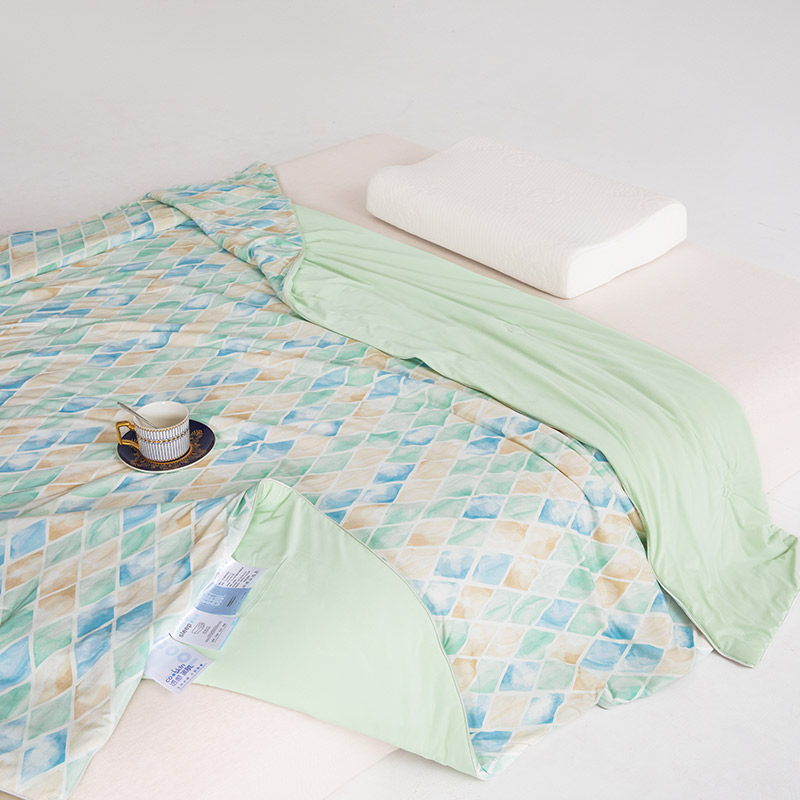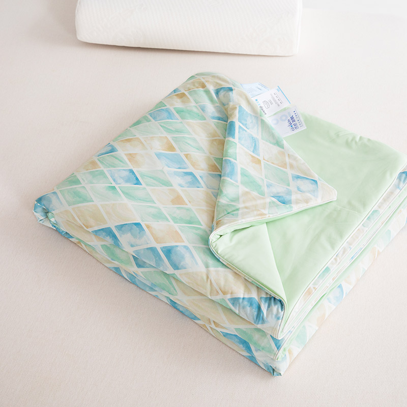 睡棉坊2025新款数码印花高克重凉感丝夏凉被呱呱被10%大豆纤维填充带质检报告 媚格绿