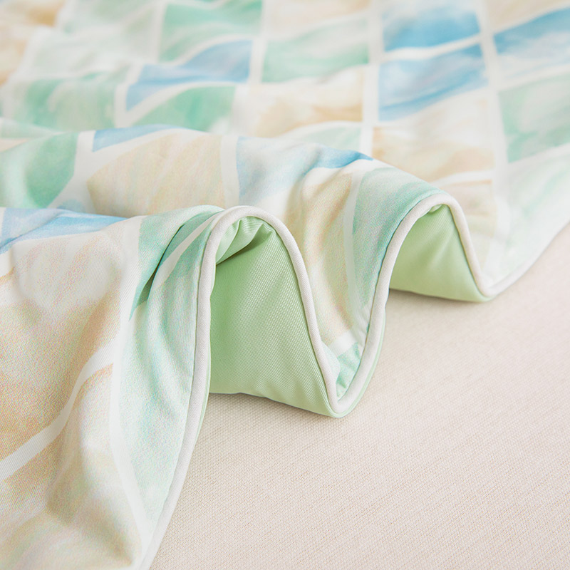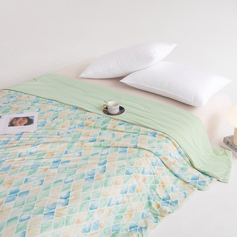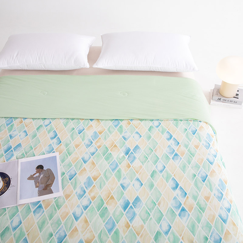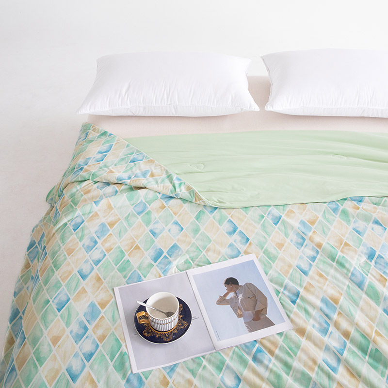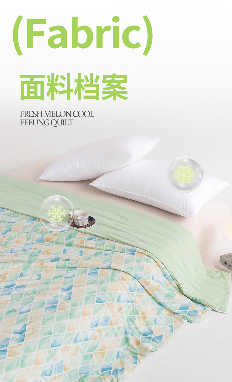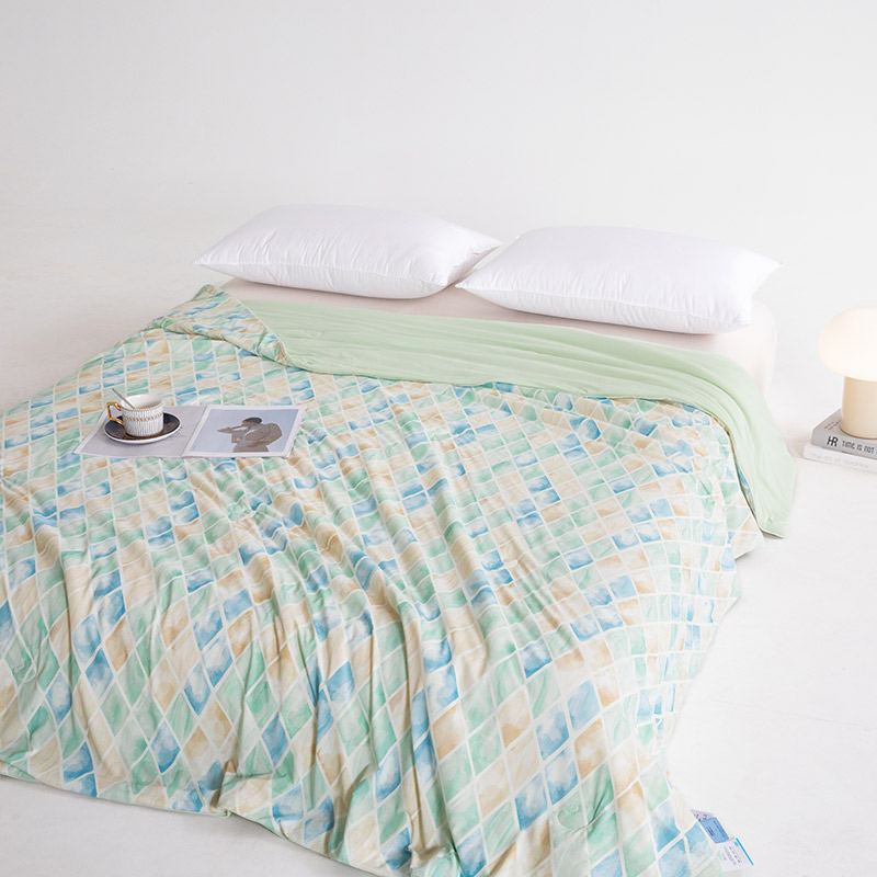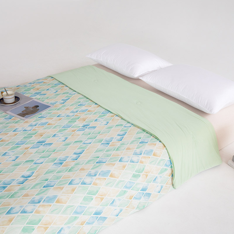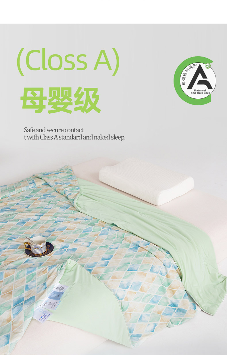 睡棉坊2025新款数码印花高克重凉感丝夏凉被呱呱被10%大豆纤维填充带质检报告 媚格绿