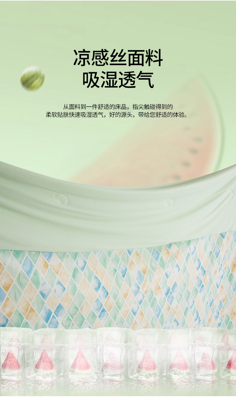 商品名称:睡棉坊2025新款数码印花高克重凉感丝夏凉被呱呱被10%大豆纤维填充带质检报告 媚格绿