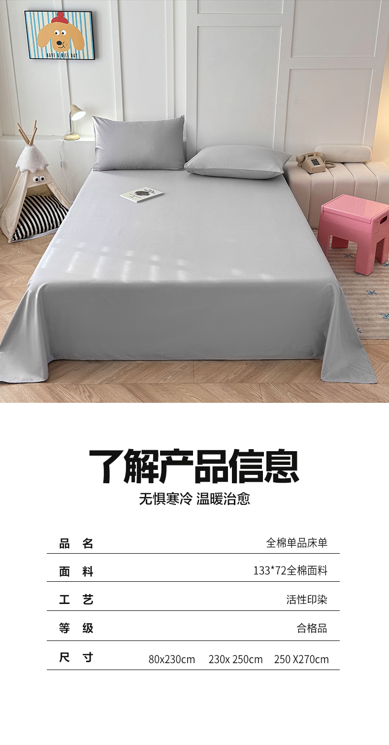 商品名称:卢赛尔 2025新款全13372纯色床单系列 浅灰色