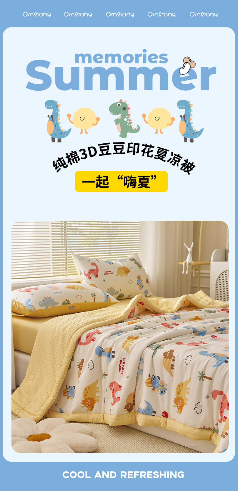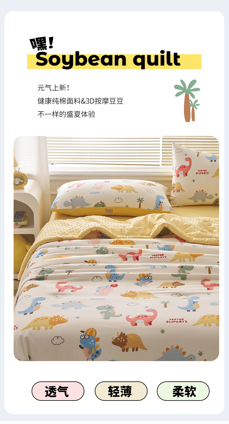 商品名称:暖阳 2025年新款纯棉豆豆夏被夏凉被被子被芯 豆豆-恐龙萌游记