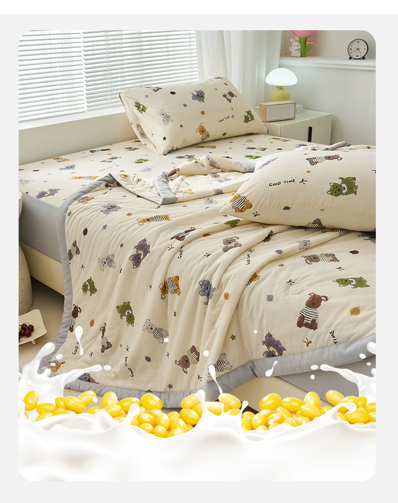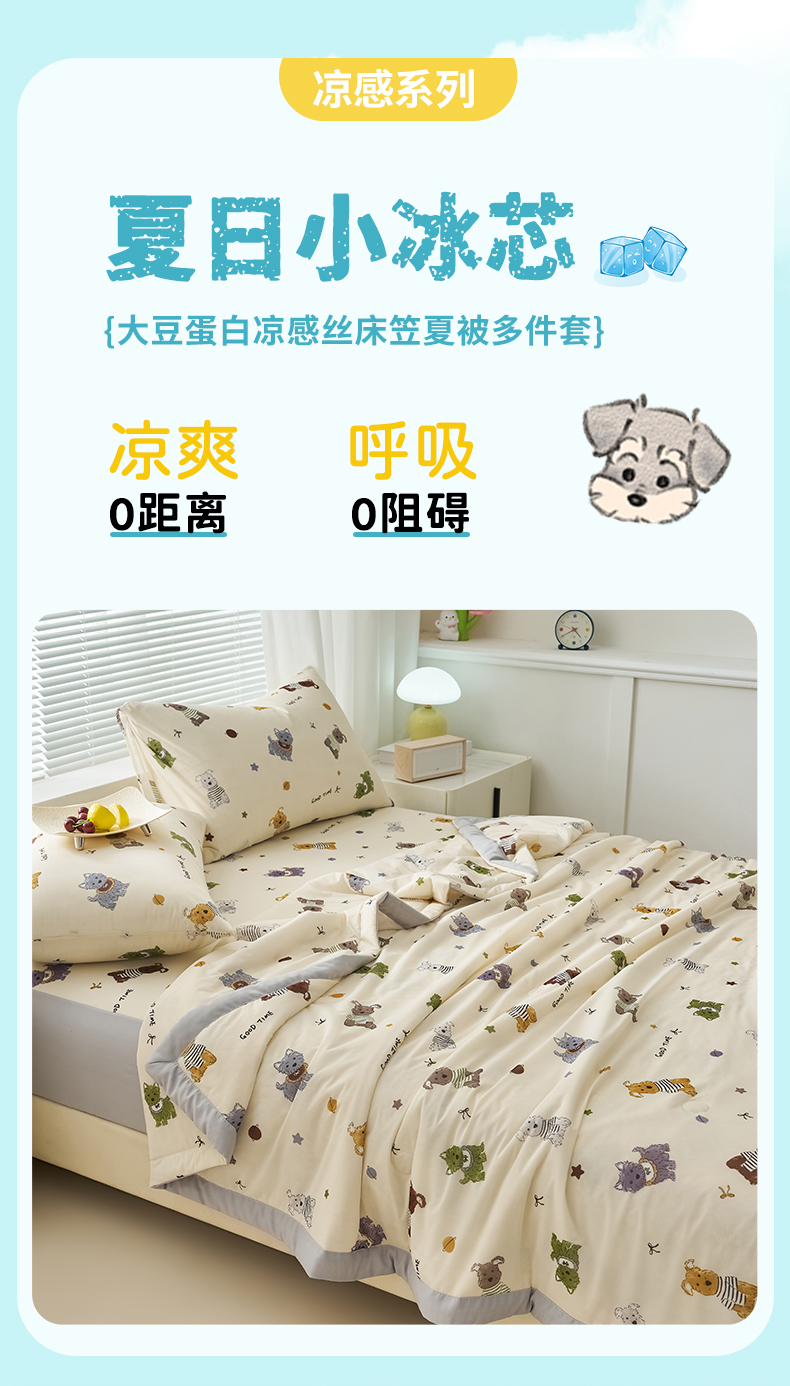 • 91家纺网 家纺一手货源 找家纺 暖阳 2025年新款大豆凉感丝夏被四件套 雪纳瑞