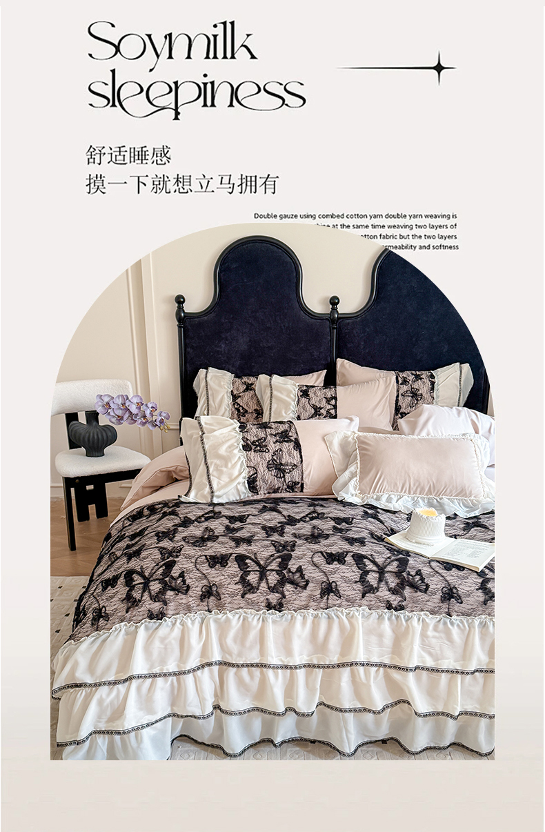 (总)吾欢心 2025新款糯小棉立体蝴蝶花边四件套-蝶恋花系列,蝶恋花白,蝶恋花粉,蝶恋花黄,蝶恋花咖,蝶恋花蓝,蝶恋花绿,蝶恋花紫
