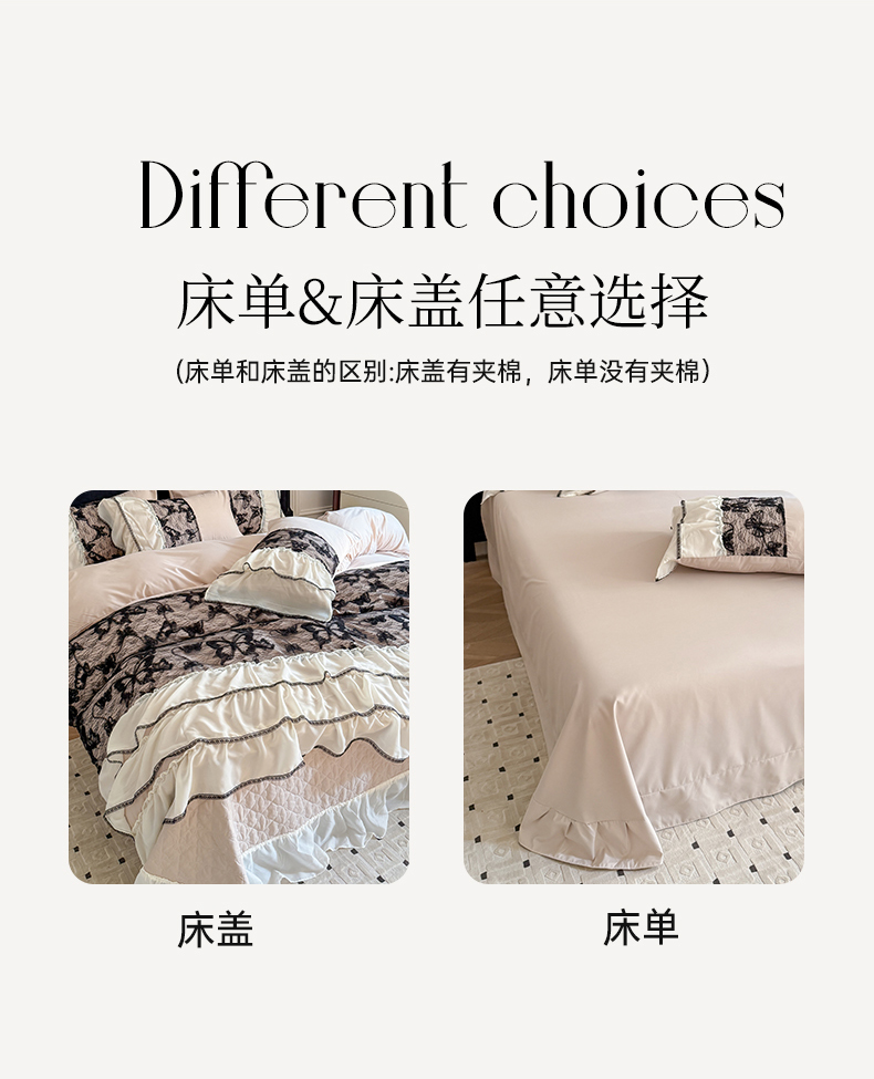(总)吾欢心 2025新款公主风雪纺边四季通用夹棉床盖,床盖白,床盖粉,床盖黄,床盖咖,床盖绿,床盖抹茶绿,床盖紫