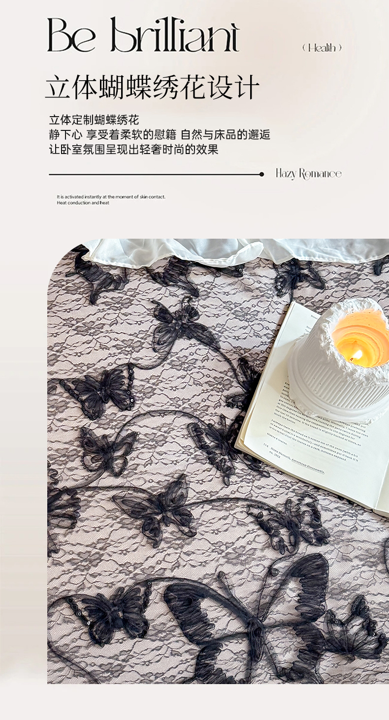 商品名称:吾欢心2025新款蝴蝶梦立体定制蝴蝶加三层雪纺花边系列四件套 蝴蝶梦咖