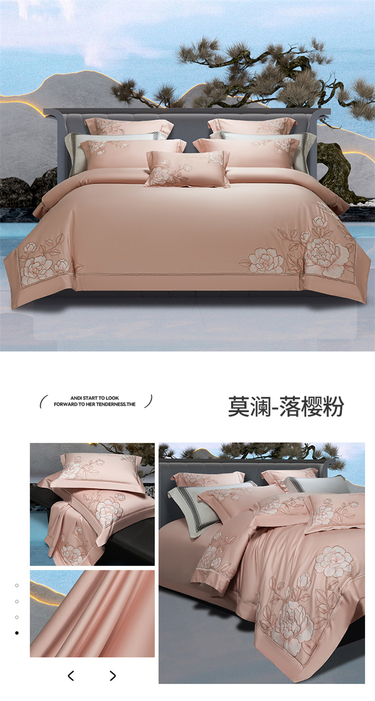 商品名称:高大尚婚庆馆 2025新款长绒棉四件套-莫澜 莫澜-落樱粉