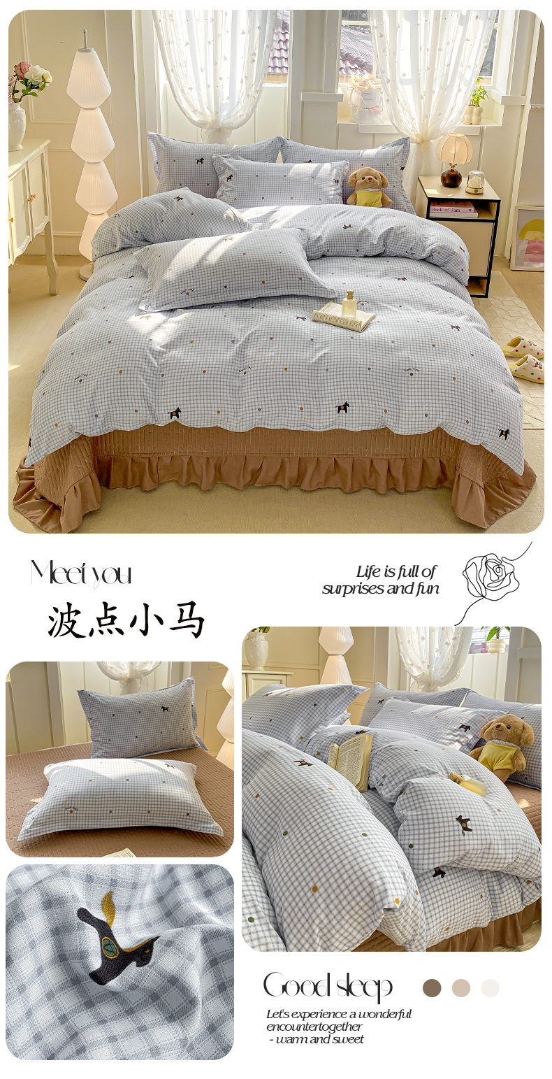 梦莱斯 2025直播爆款公主风A类针织棉床盖四件套AA版被套 波点小马