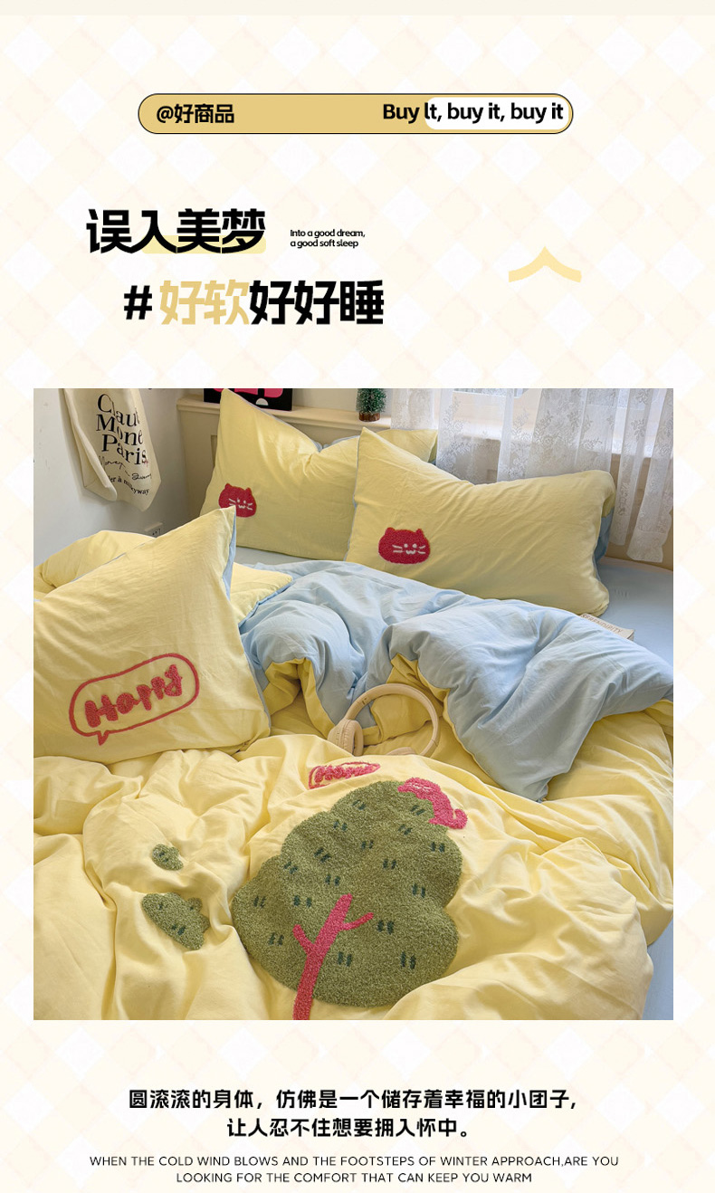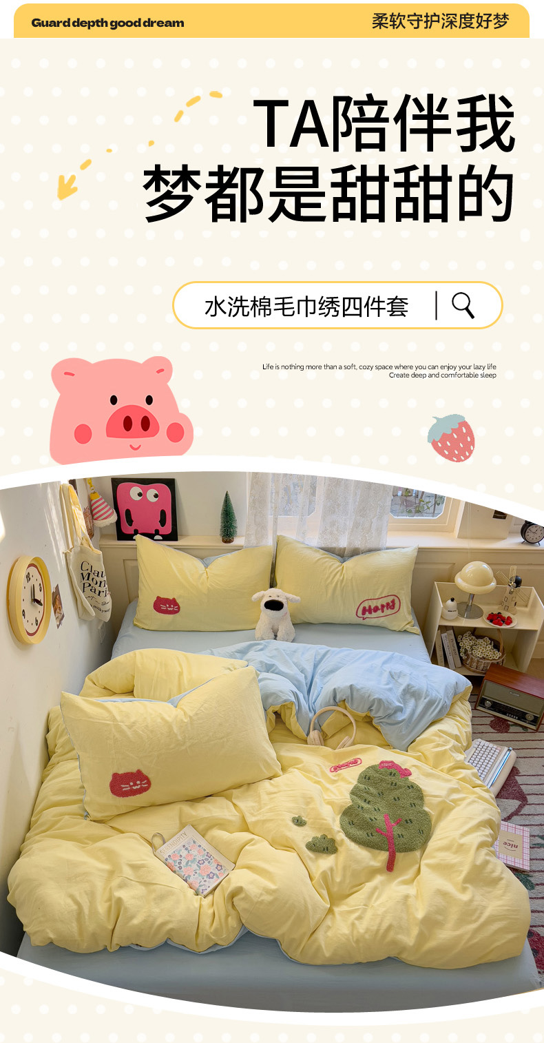 当前位置: 91家纺网 > 商品网购 > 床品套件 > 四件套 > 毛巾绣四件套 > 花伞家居 2025新款精灵水洗棉毛巾绣四件套含买家秀 发财树-黄蓝