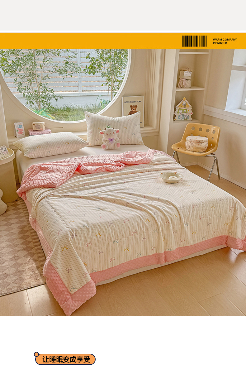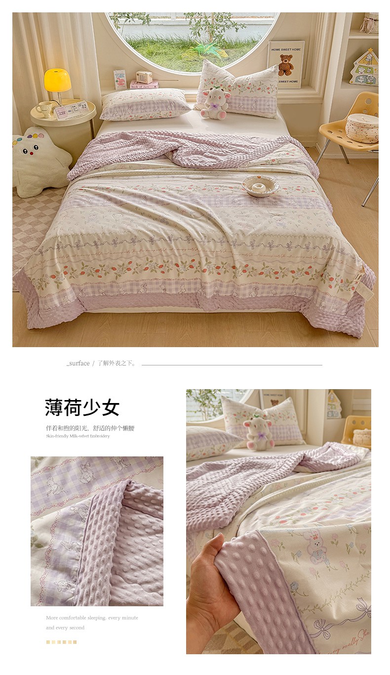 (总)梦依依 2025新款全棉双层纱贝壳边夏被四件套,仙子,功夫熊猫,南瓜派,复古樱桃,心悦,快乐魔法,恐龙舞会,春意融融,春晴,月光集,樱桃粉兔,瑞莎,童年,紫樱桃,美雅,腊肠狗