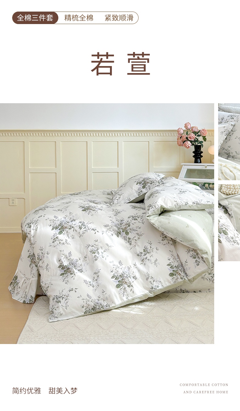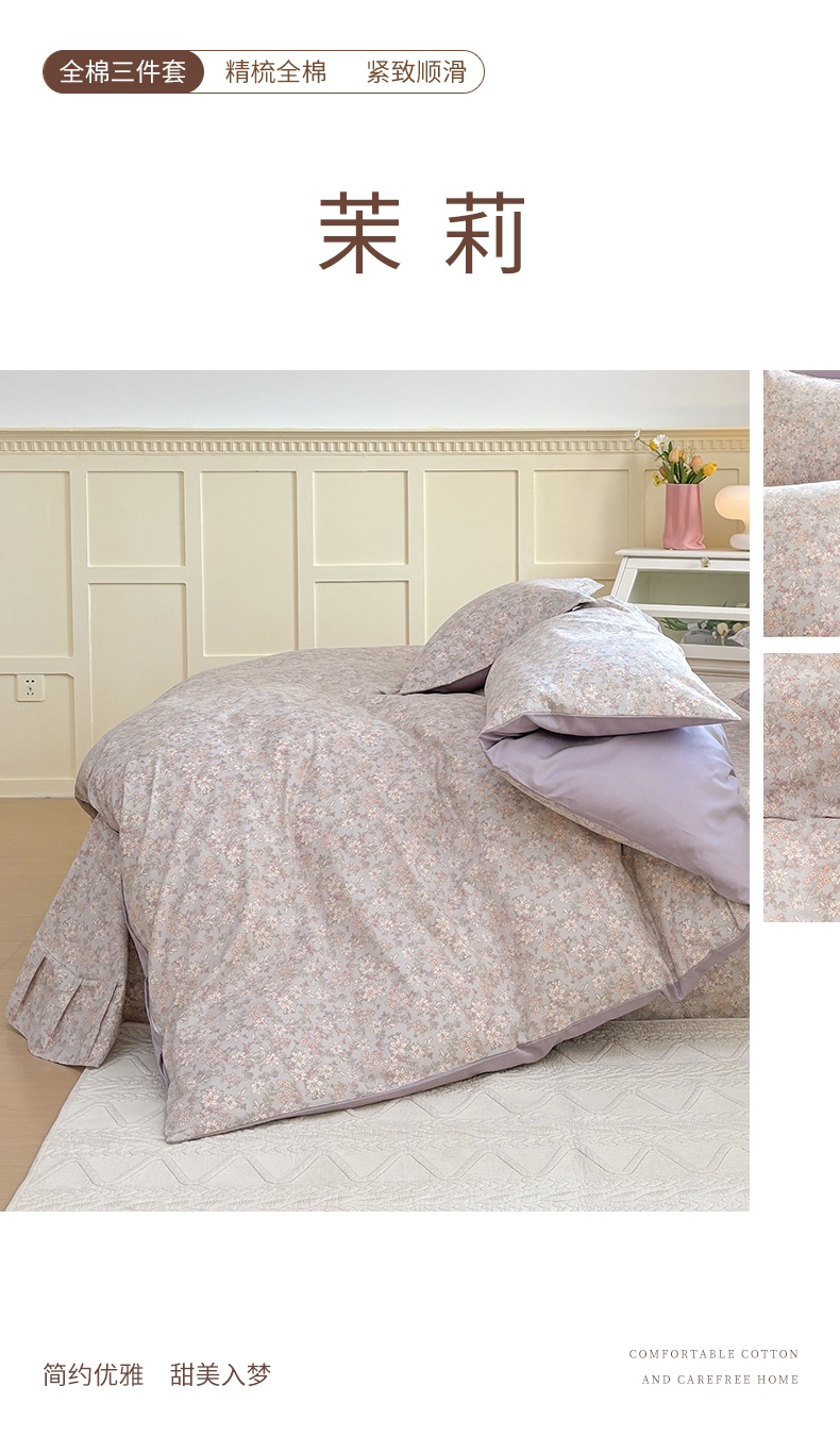 当前位置: 91家纺网 > 商品网购 > 床品套件 > 三件套 > 元元被芯 2025新款40支13372全棉印花全棉三件套 茉莉