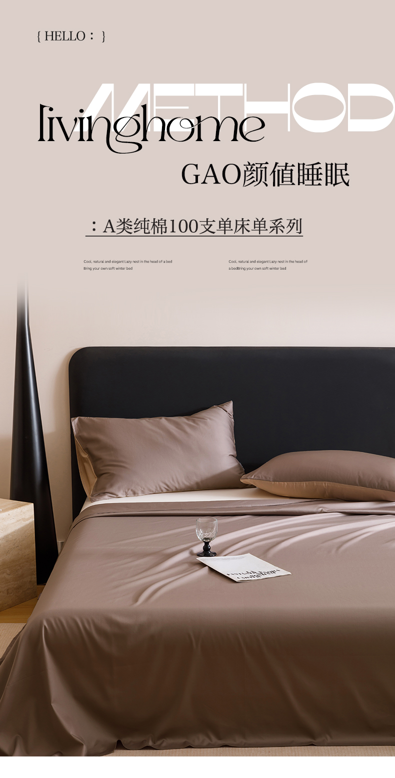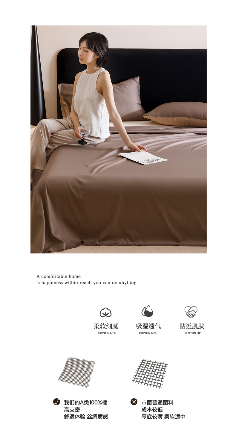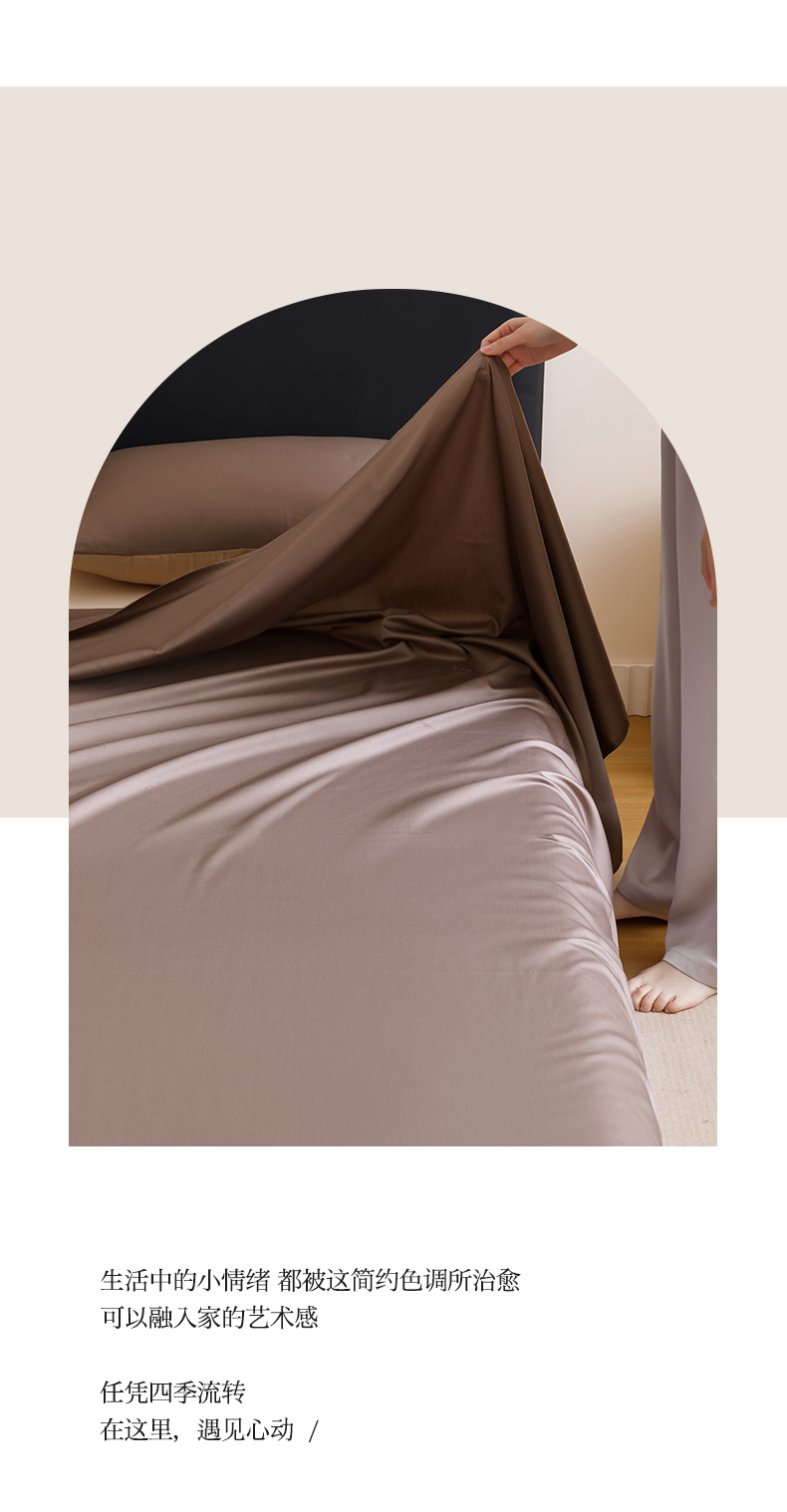• 91家纺网 家纺一手货源 找家纺 寐绸家纺 2025新款纯棉60支长绒棉床单系列 长绒棉床单-烟灰咖