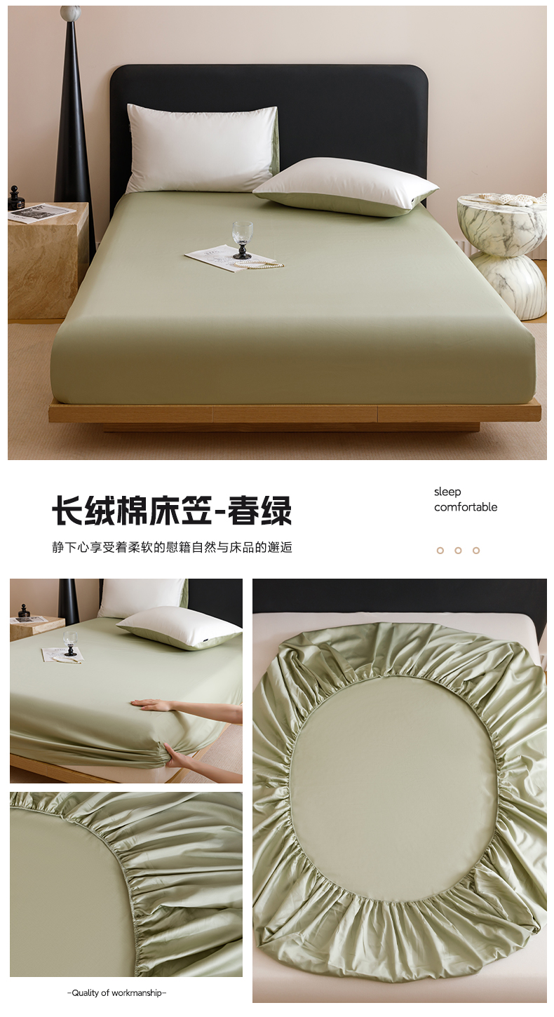 • 91家纺网 家纺一手货源 找家纺 寐绸家纺 2025新款纯棉60支长绒棉床笠系列 长绒棉床笠-春绿