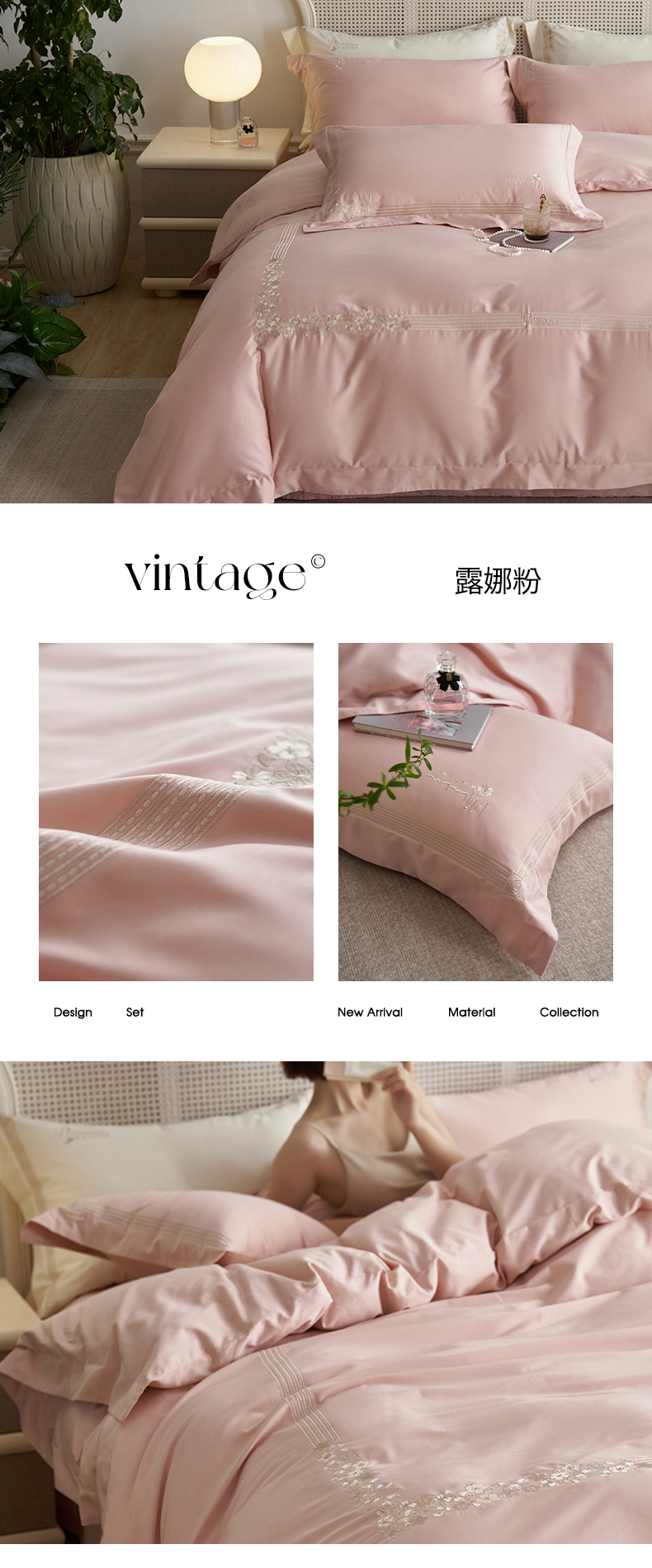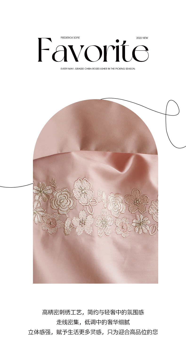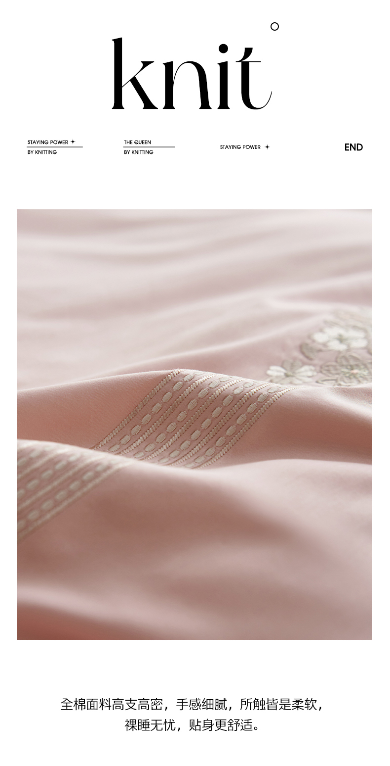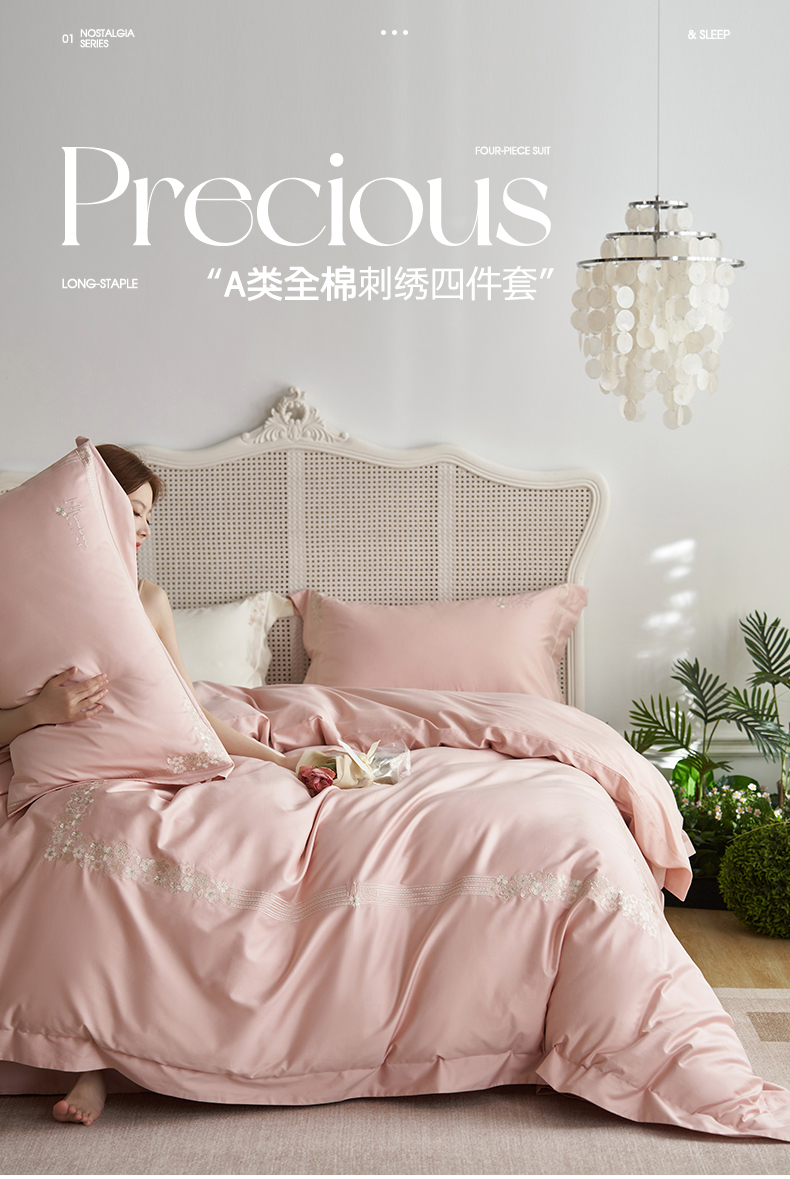 商品名称:嗯呢家纺 2025新款A类全棉刺绣四件套 露娜粉