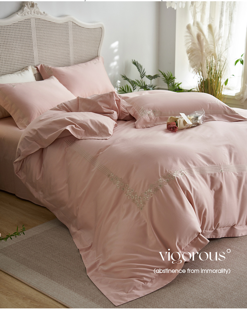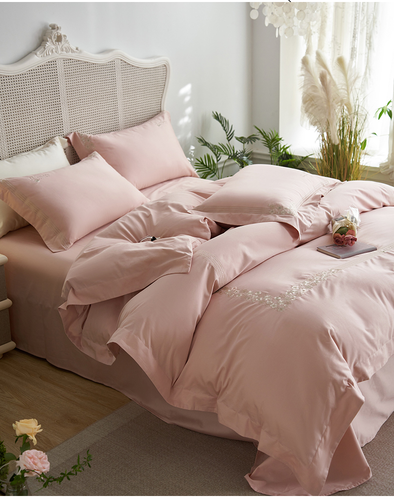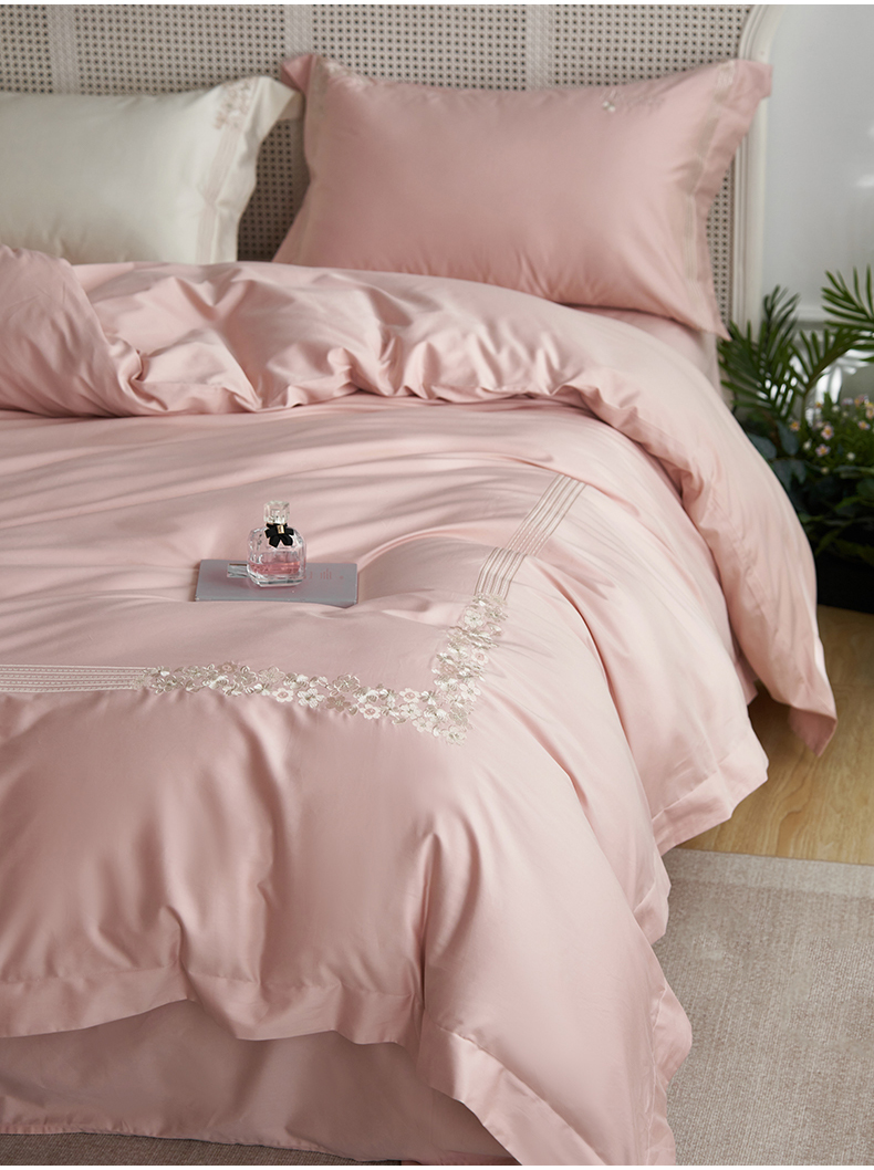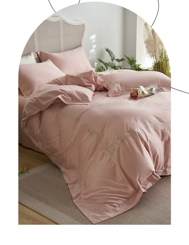 嗯呢家纺 2025新款A类全棉刺绣四件套 露娜粉