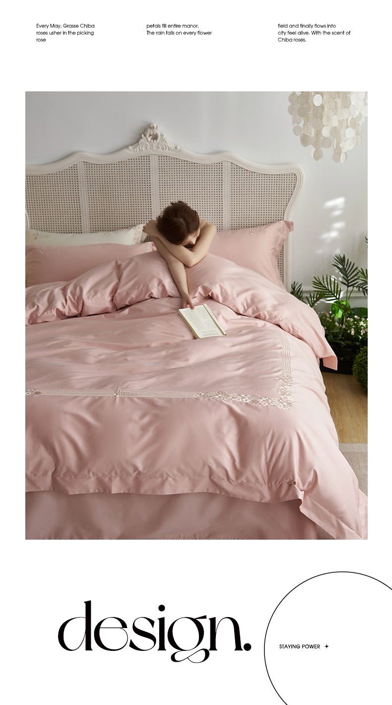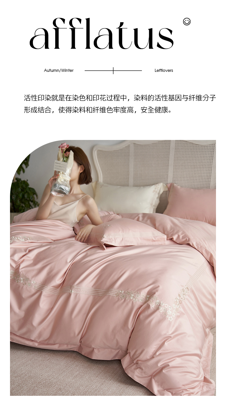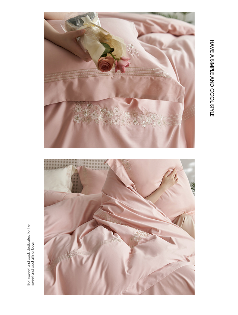 嗯呢家纺 2025新款A类全棉刺绣四件套 露娜粉