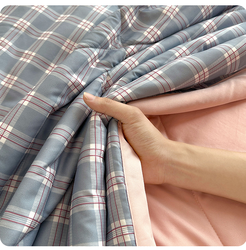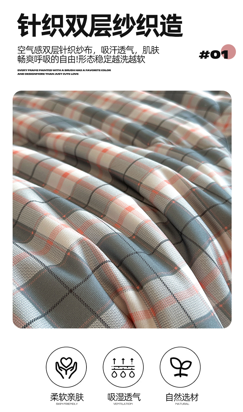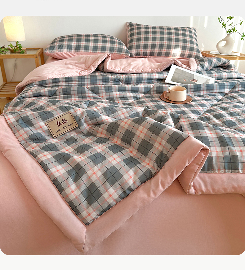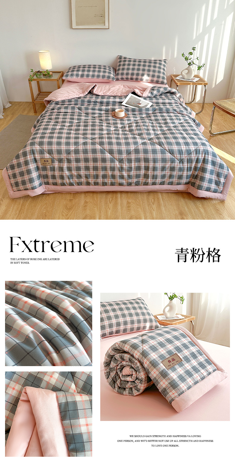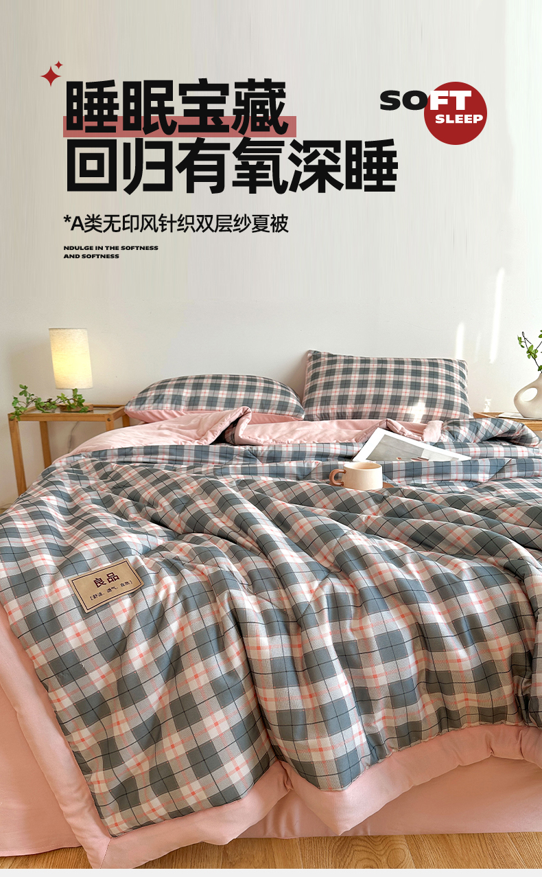 商品名称:悦织语 2025新款A类无印风针织双层纱夏被夏凉被空调被 青粉格
