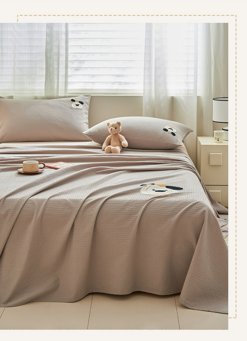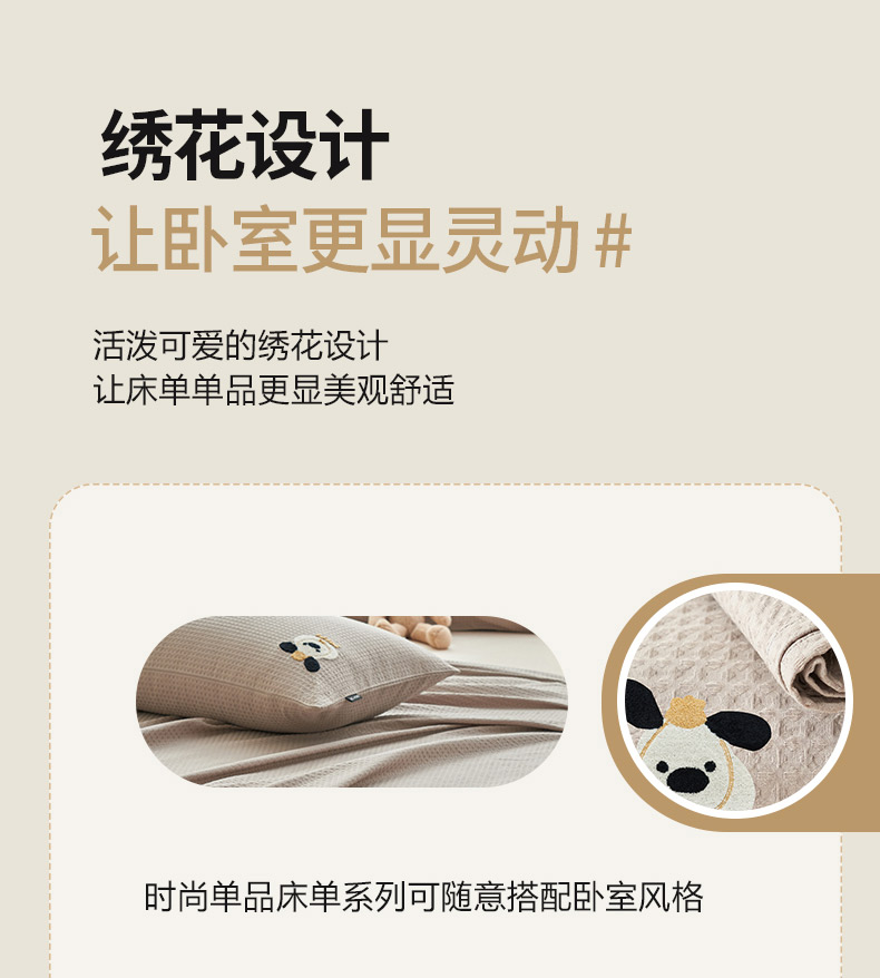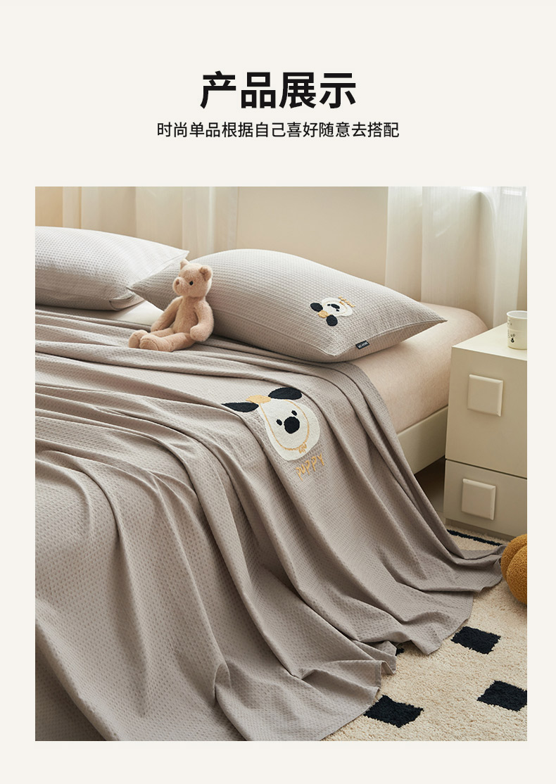 当前位置: 91家纺网 > 商品网购 > 床上用品 > 床单 > 寐绸家纺 2025新款纯棉华夫格毛巾绣单床单 绣花华夫格床单-浅灰