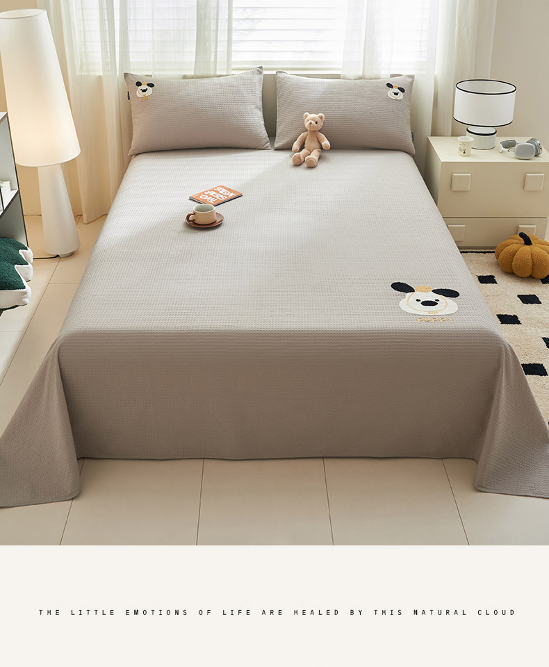 寐绸家纺 2025新款纯棉华夫格毛巾绣单床单 绣花华夫格床单-浅灰