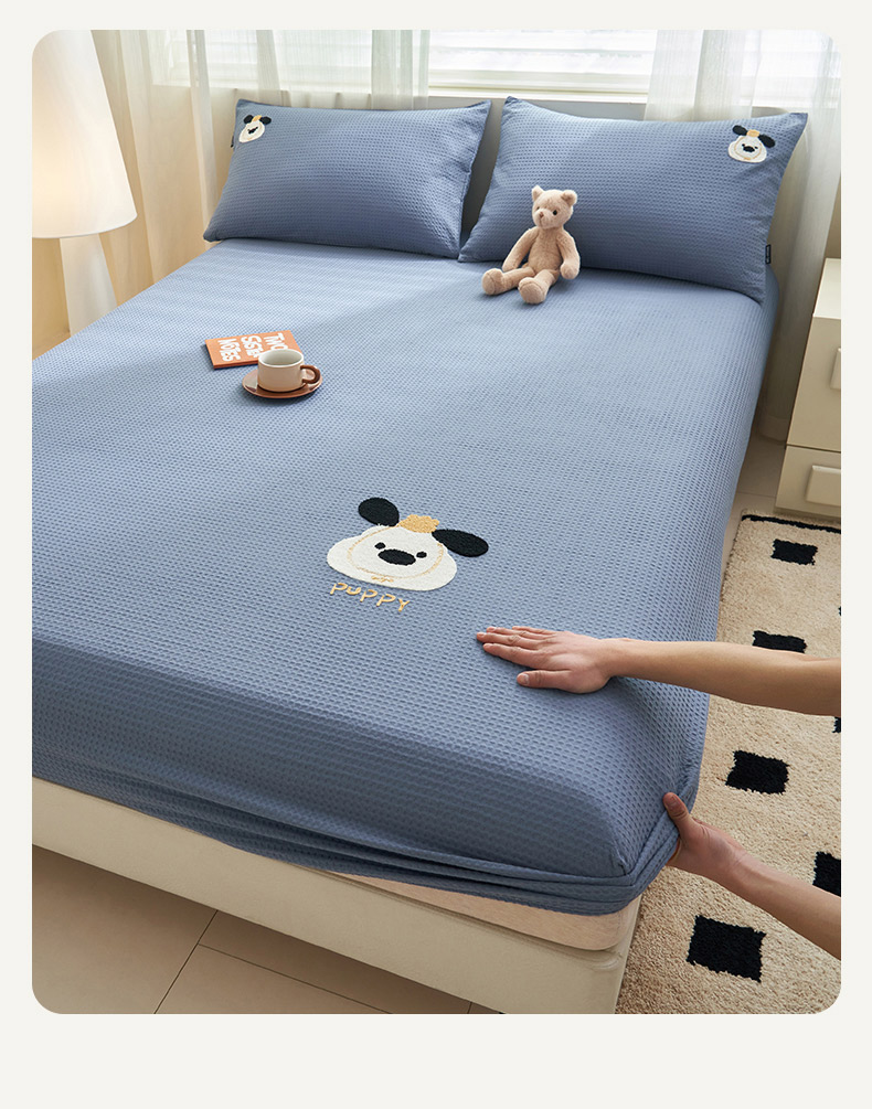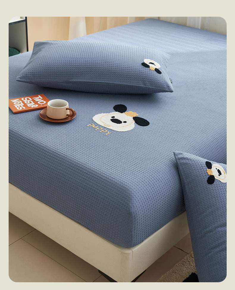 (总)寐绸家纺 2025新款纯棉华夫格毛巾绣单床笠