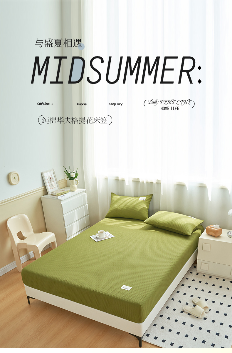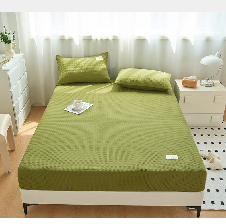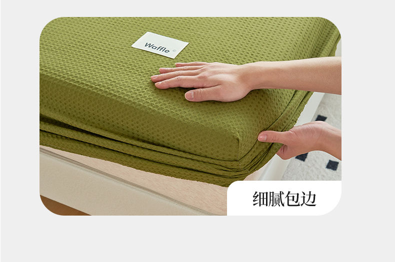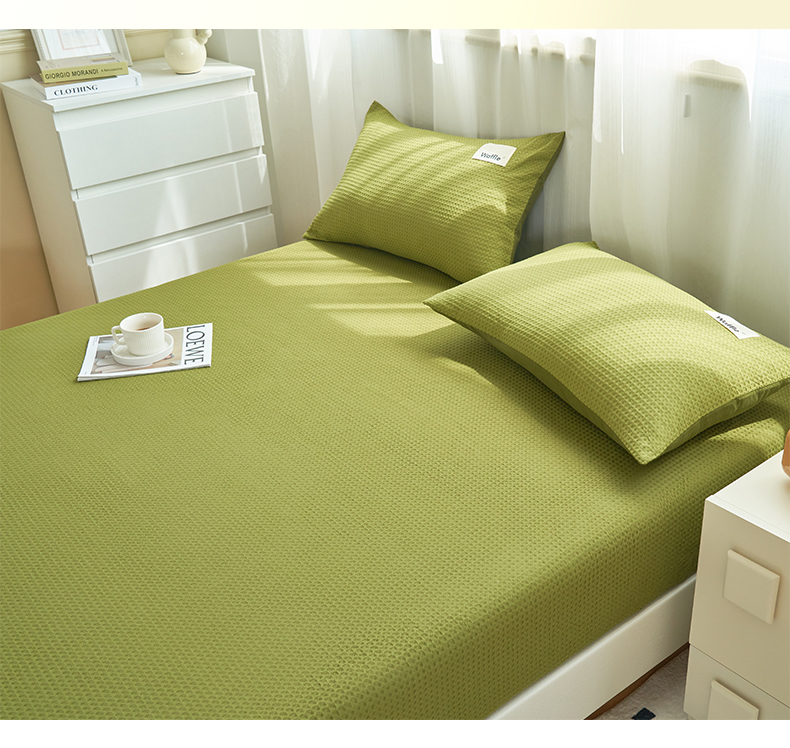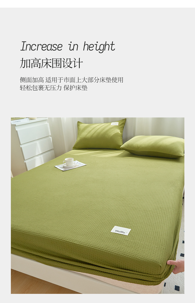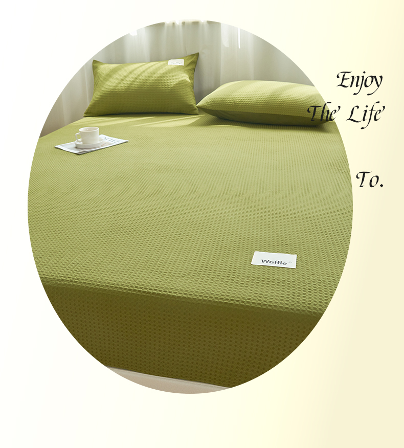 寐绸家纺 2025新款纯棉华夫格床笠 纯棉华夫格床笠-橄榄绿