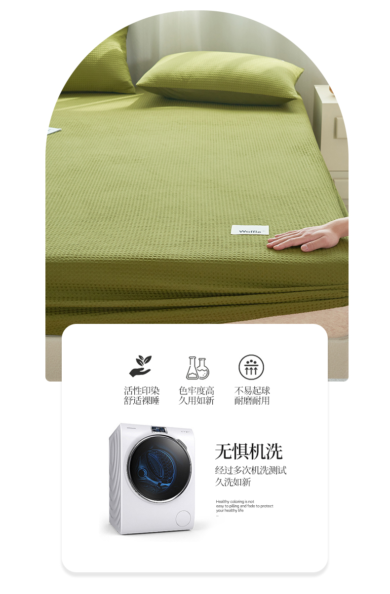 • 91家纺网 家纺一手货源 找家纺 寐绸家纺 2025新款纯棉华夫格床笠 纯棉华夫格床笠-橄榄绿