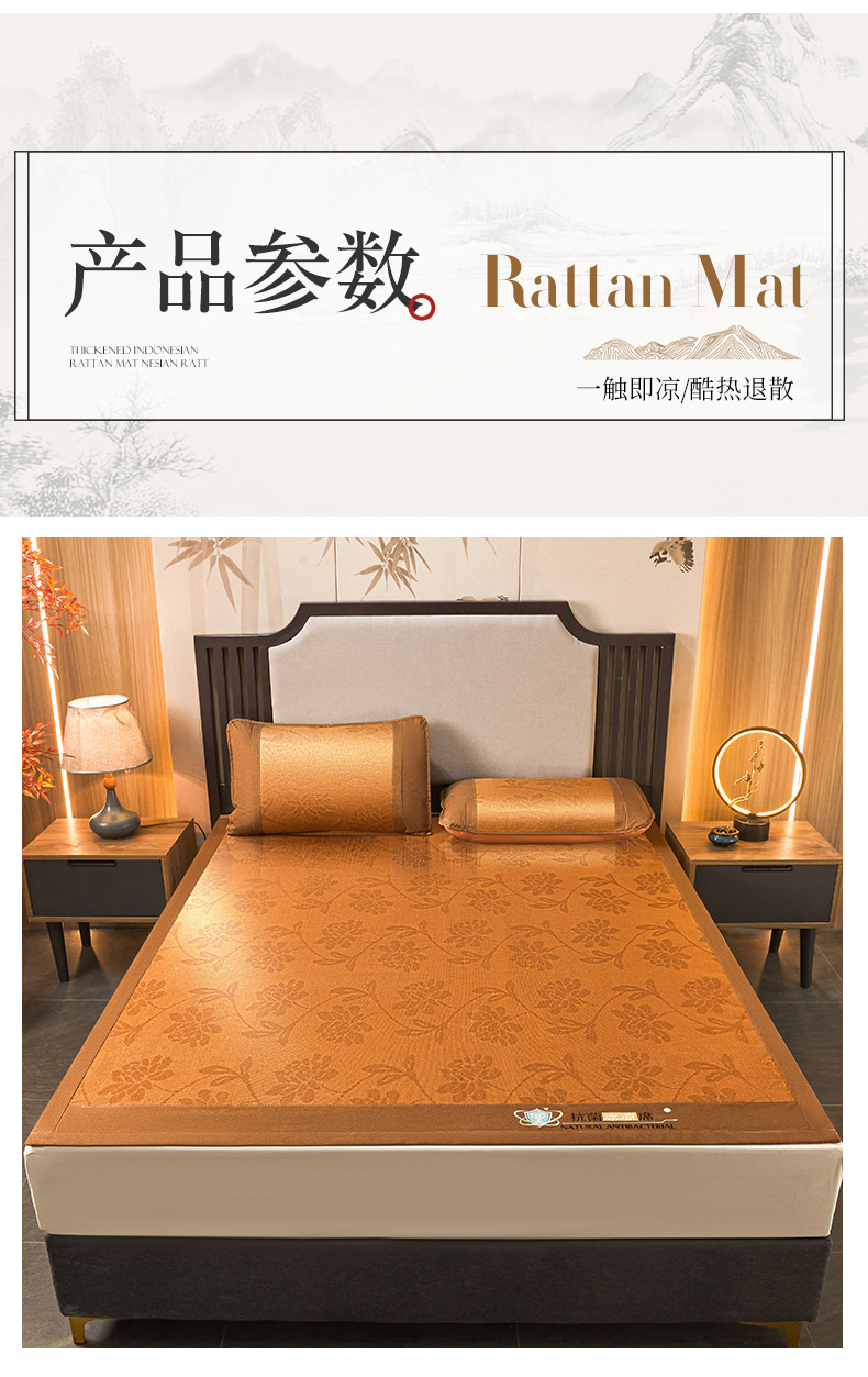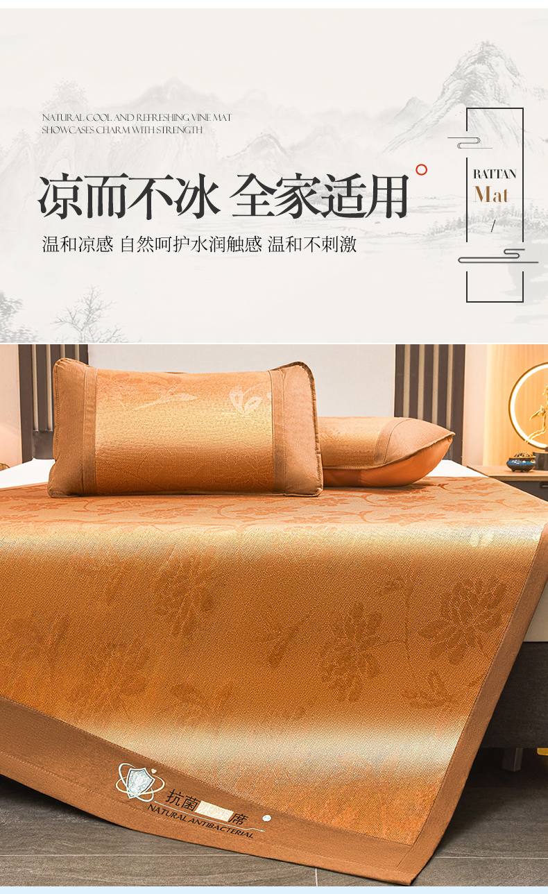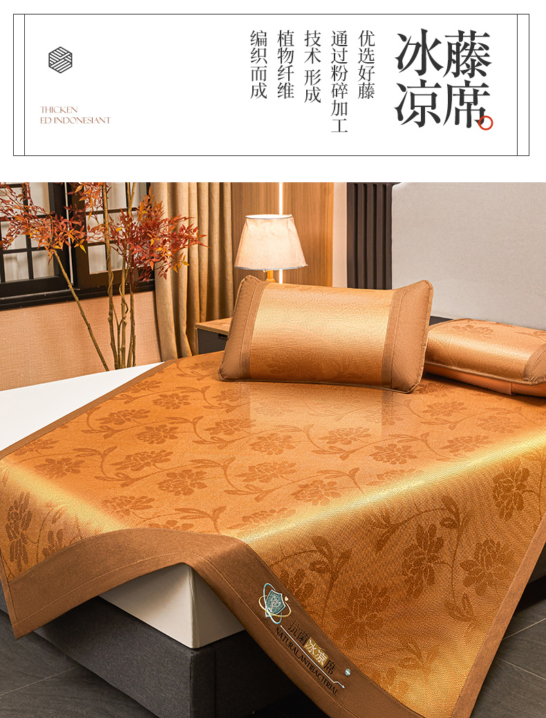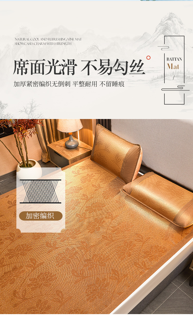 当前位置: 91家纺网 > 商品网购 > 床上用品 > 凉席 > 其他凉席 > 航途席业 2025新款冰藤席凉席三件套宽包边抗菌刺绣款冰藤凉席 水中花
