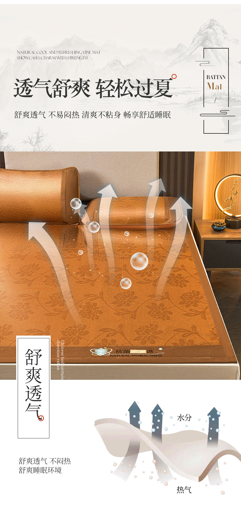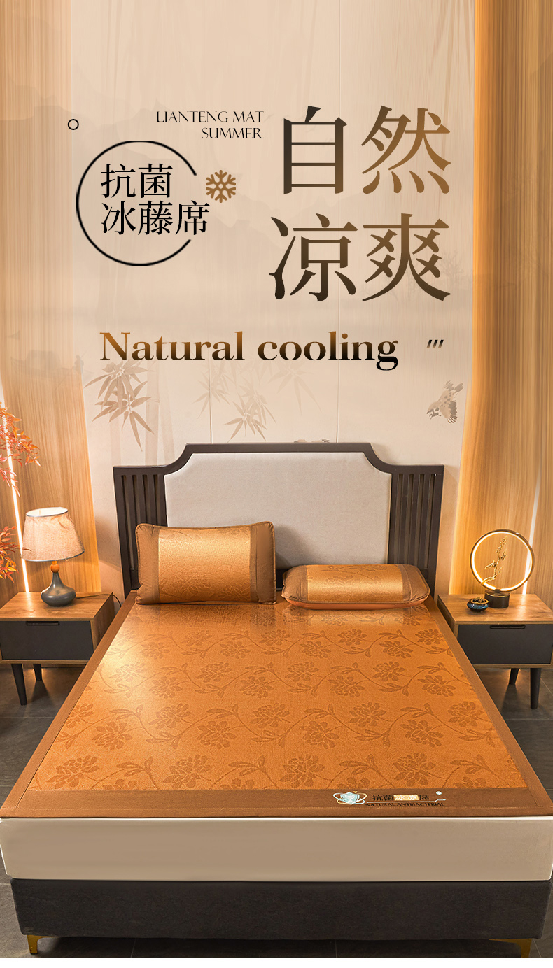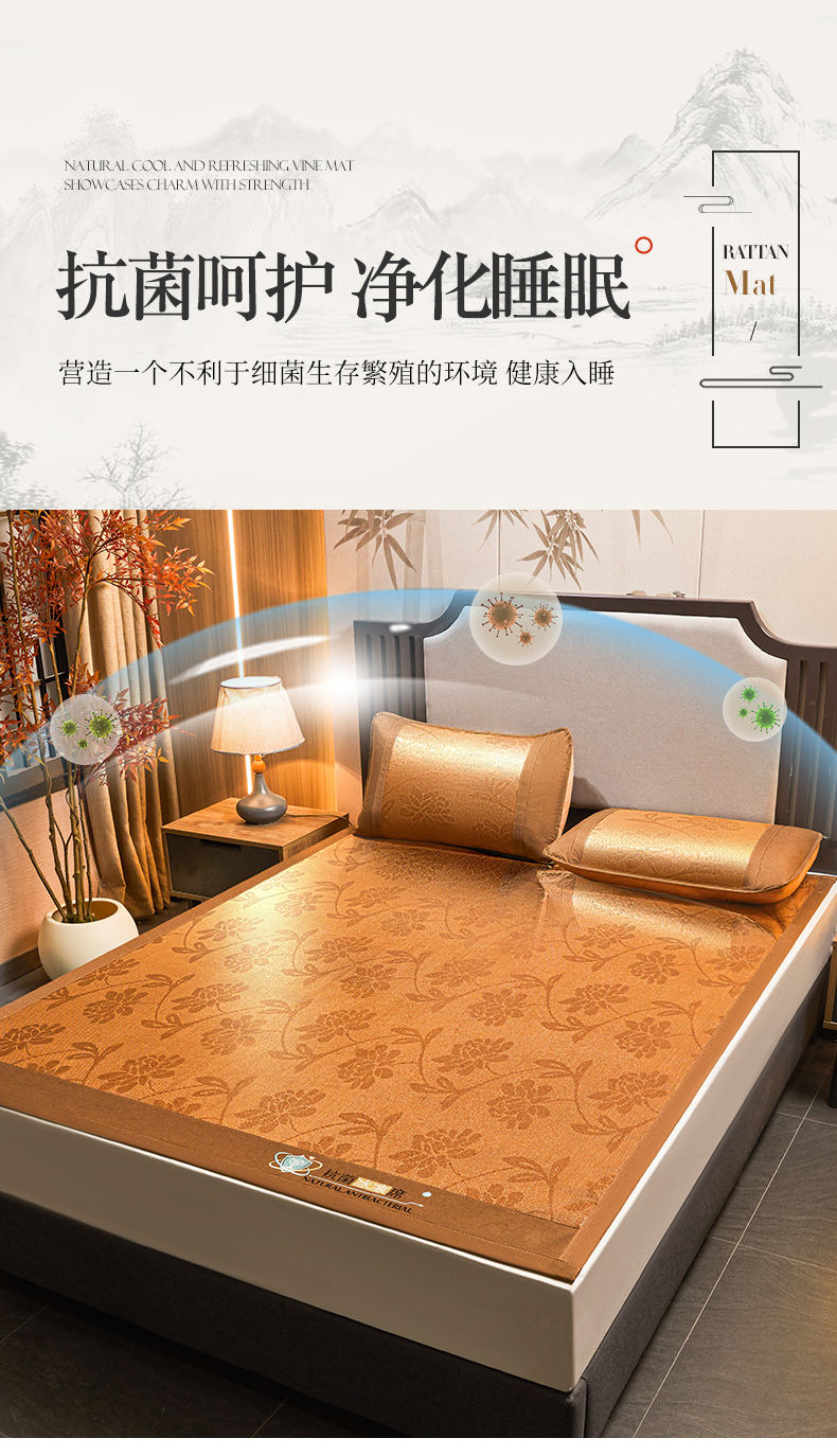 当前位置: 91家纺网 > 商品网购 > 床上用品 > 凉席 > 其他凉席 > 航途席业 2025新款冰藤席凉席三件套宽包边抗菌刺绣款冰藤凉席 水中花