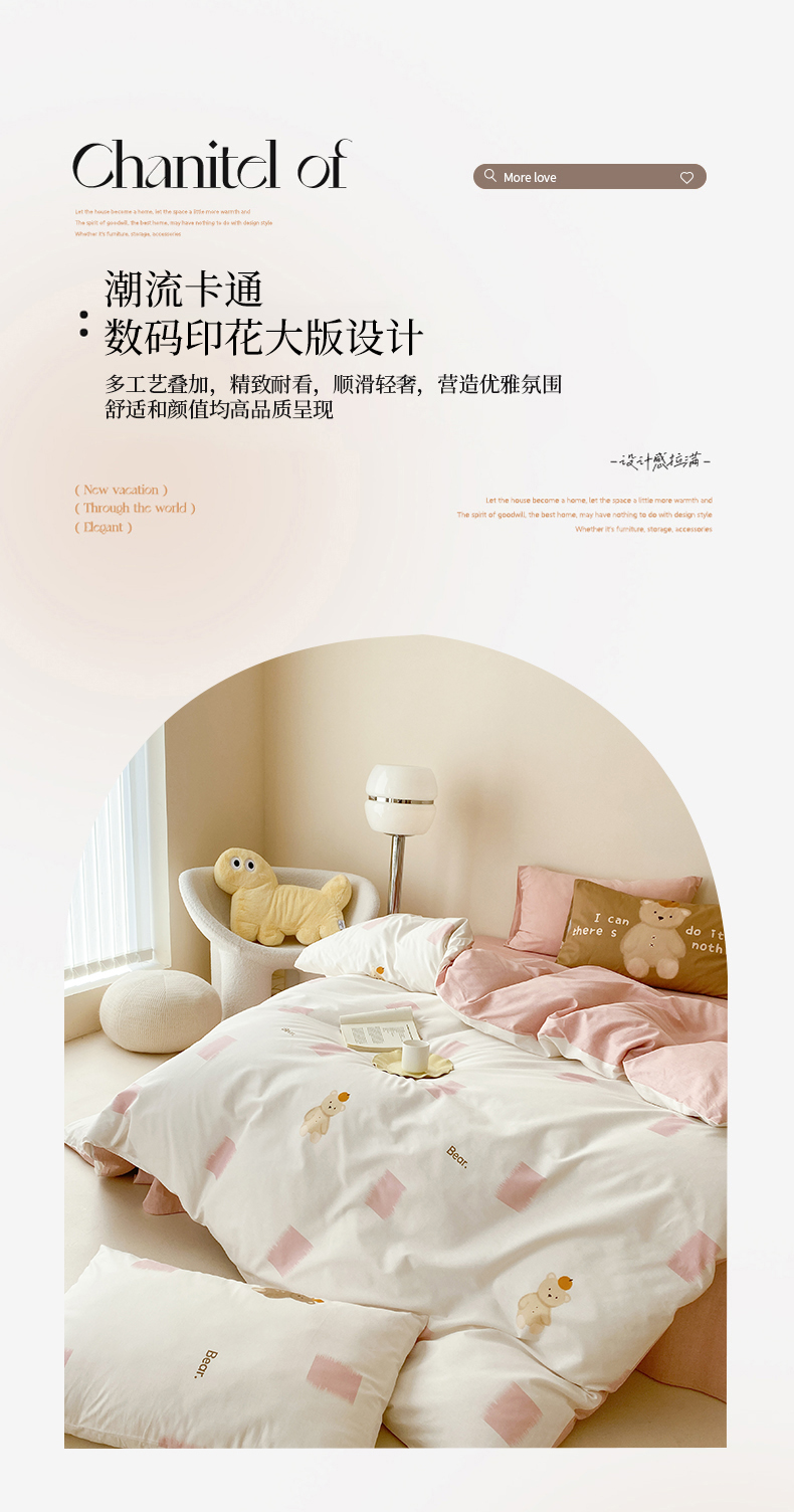 商品名称:嘉汀兰 2025新款40s全棉纯棉数码印花大版四件套系列 戈贝林熊的故事