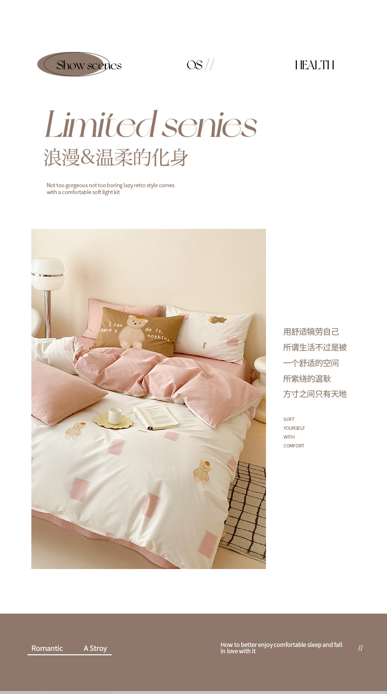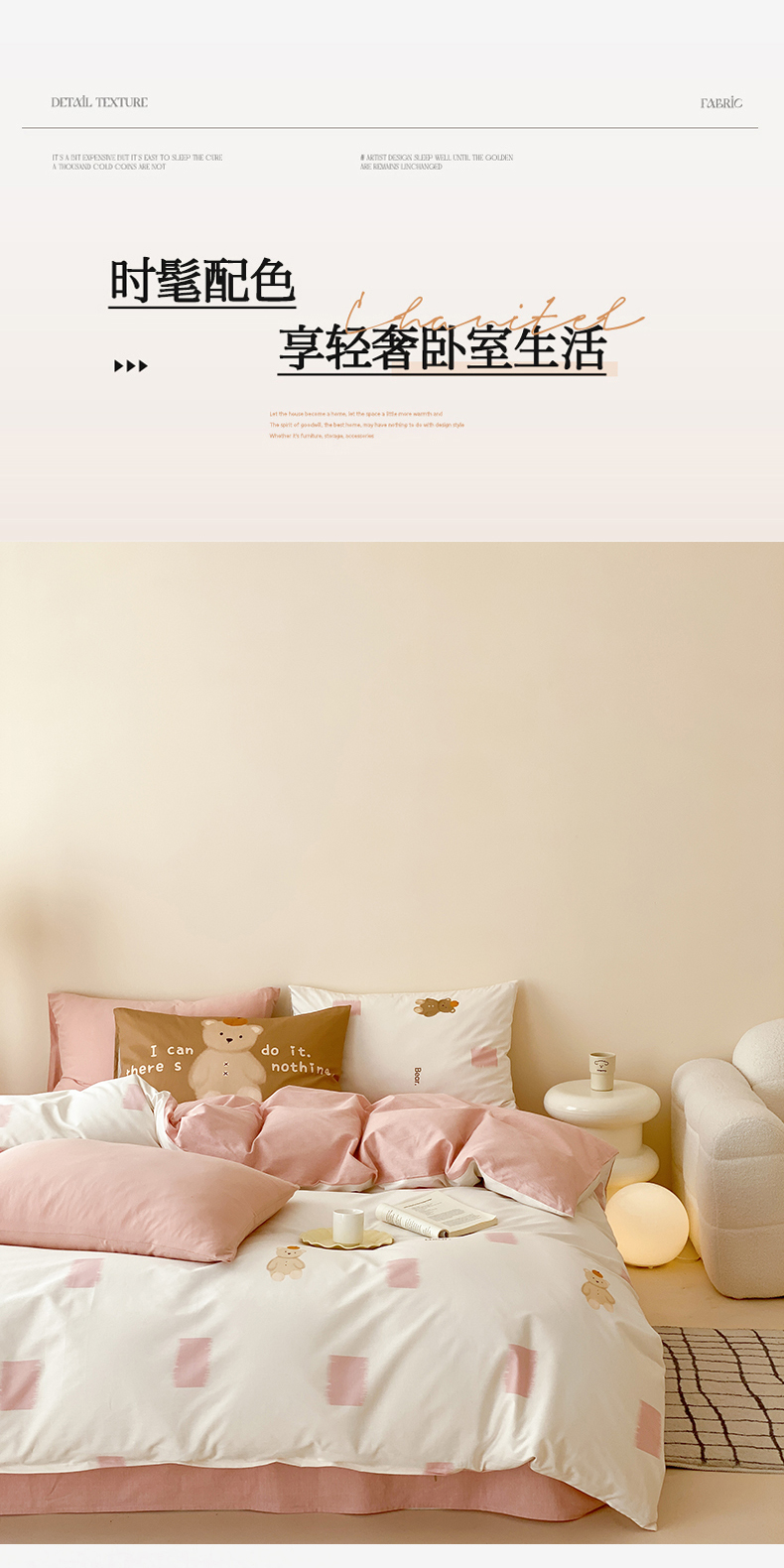 (总)嘉汀兰 2023新款60支全棉磨毛绣花撞色轻奢四件套—暮里,粉色,红灰色,芥绿色,浅灰色,深青色