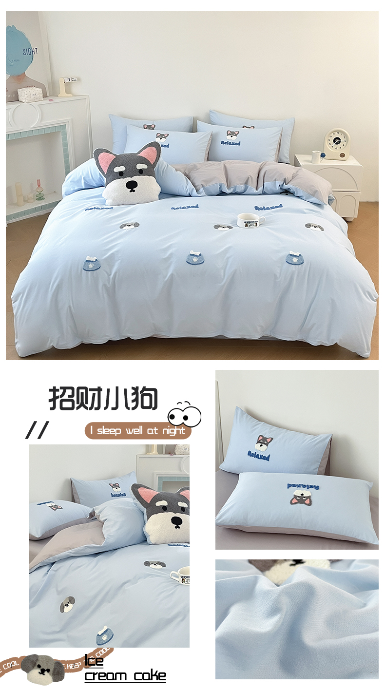 当前位置: 91家纺网 > 商品网购 > 床品套件 > 四件套 > 其它四件套 > 卡巴伦2025新款高密全棉水洗棉毛巾绣四件套 招财小狗