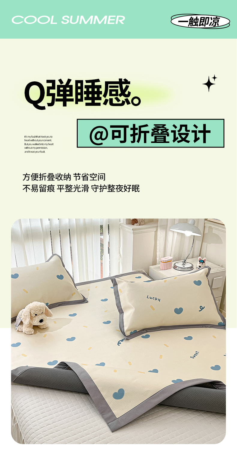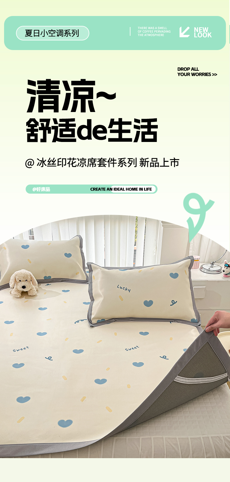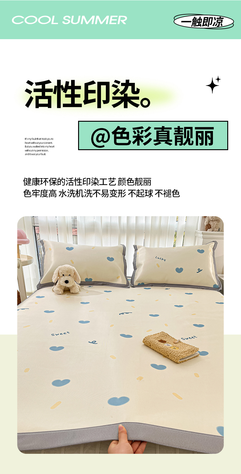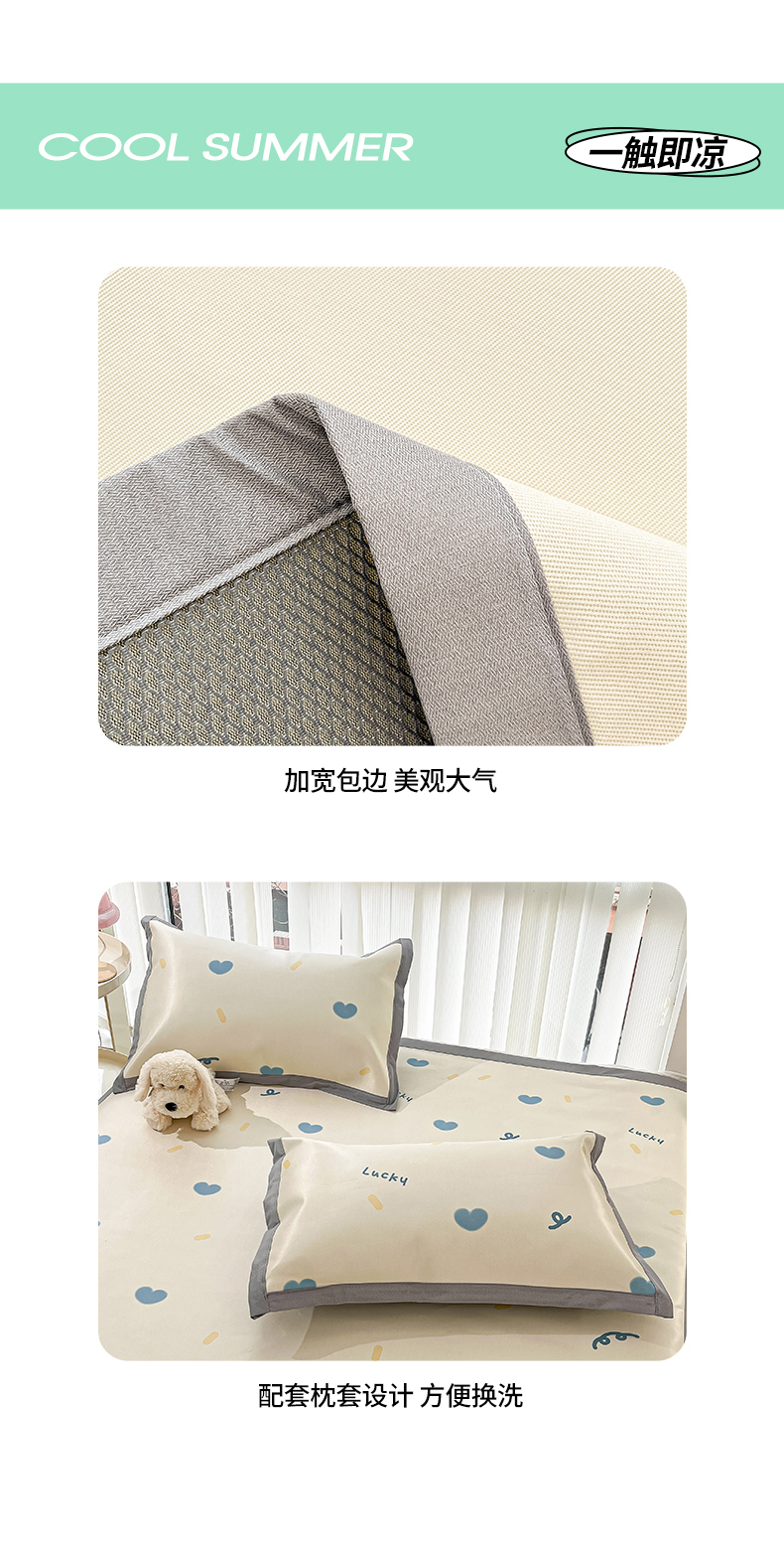 川悦生活 2025新款600D立体宽边冰丝印花凉席 甜蜜心率