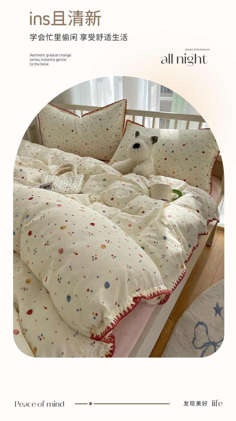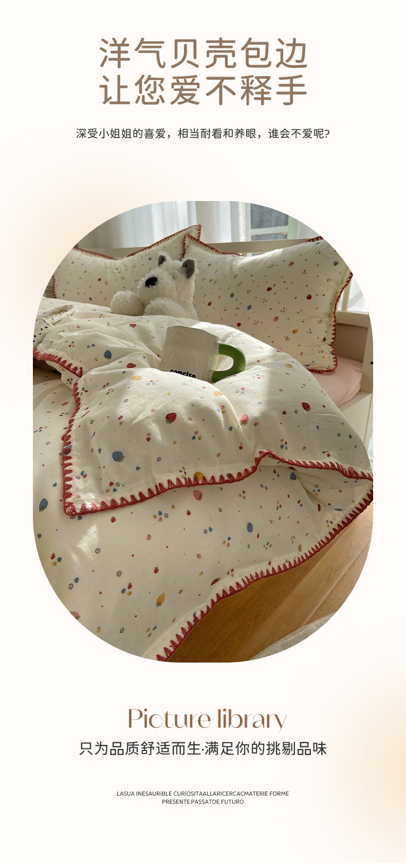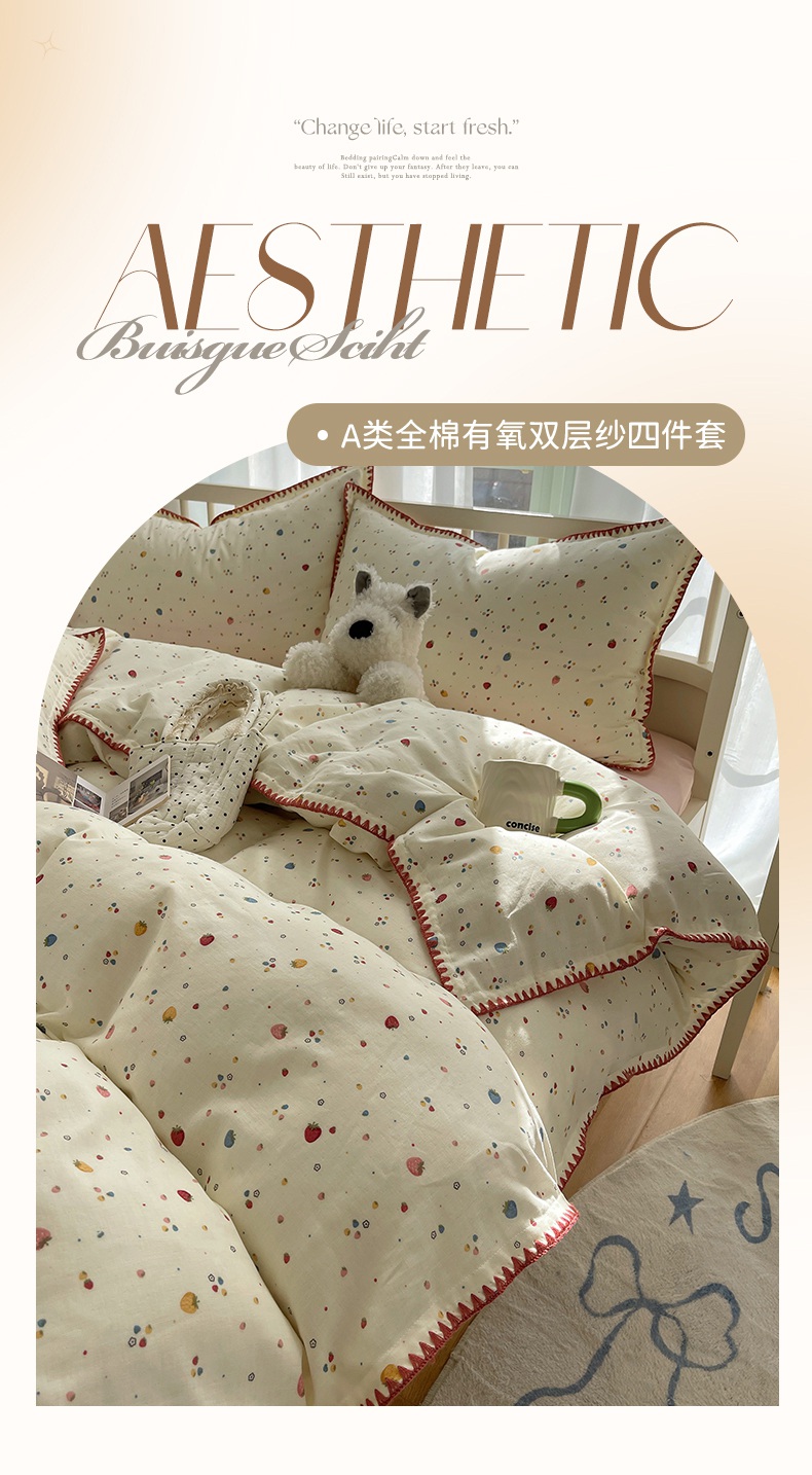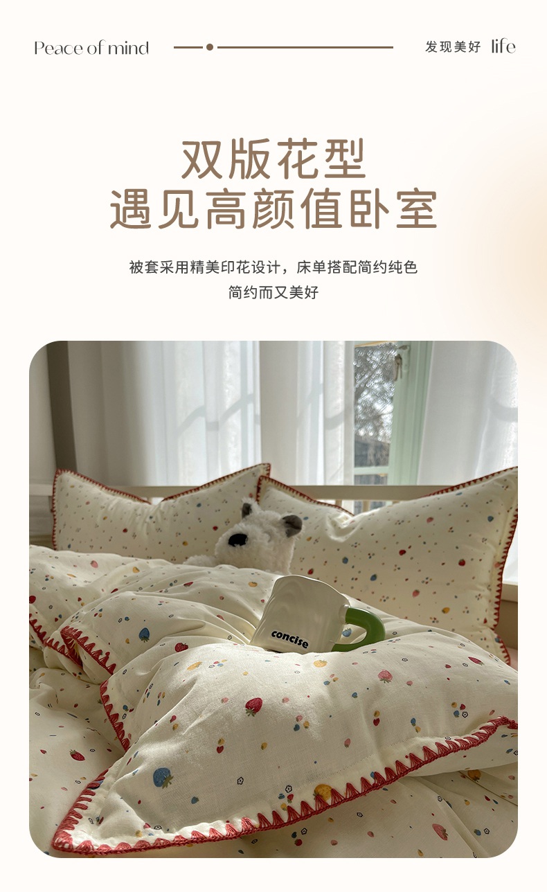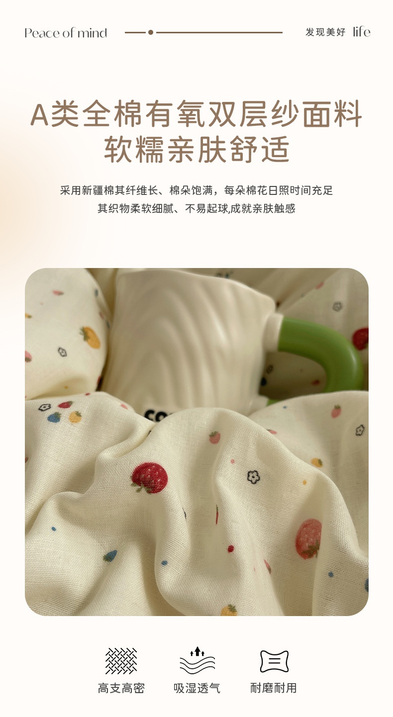 商品名称:瑞莱 2025新款13372全棉有氧双层纱四件套 山野草莓