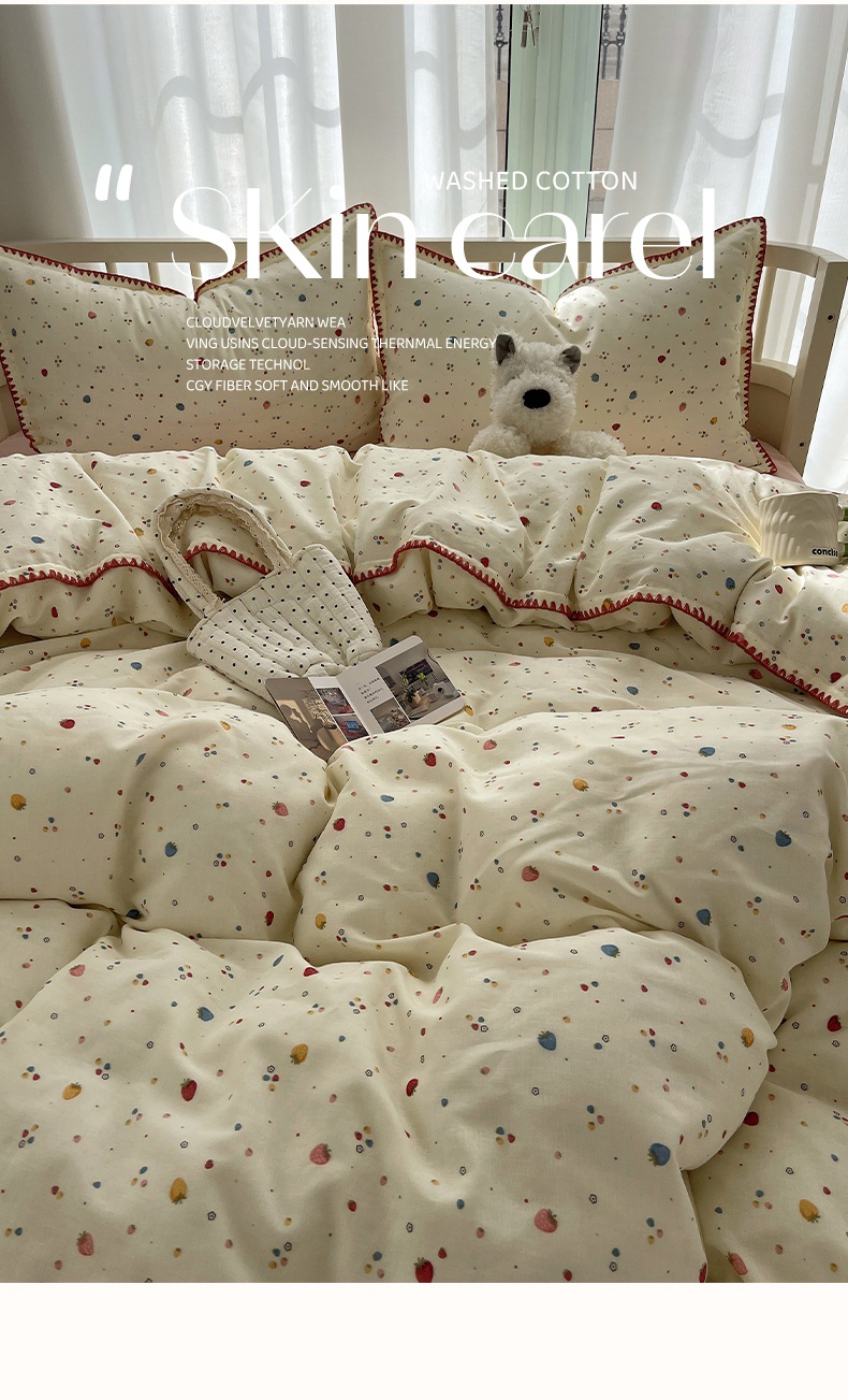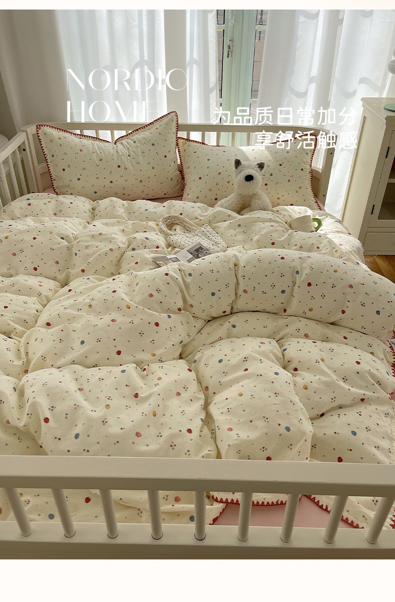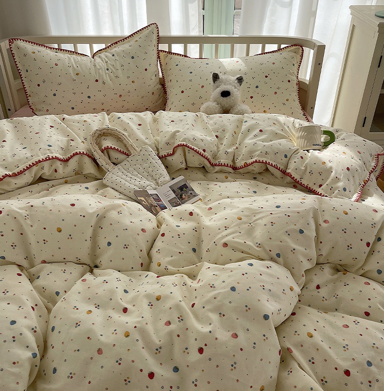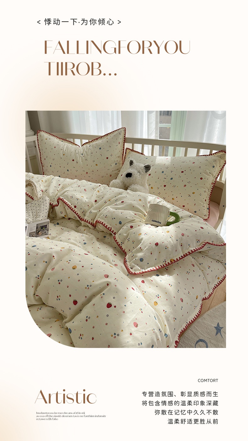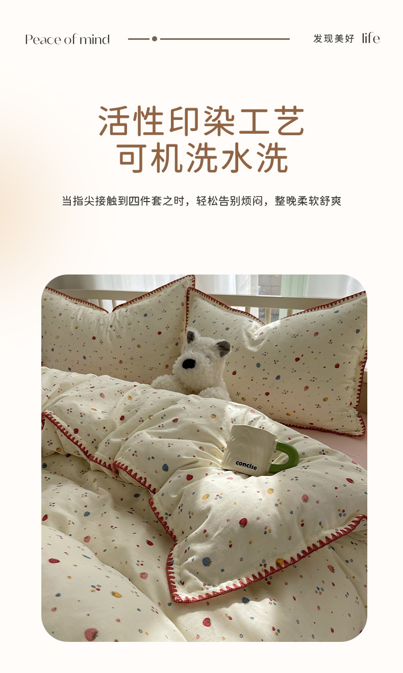 商品名称:瑞莱 2025新款13372全棉有氧双层纱四件套 山野草莓