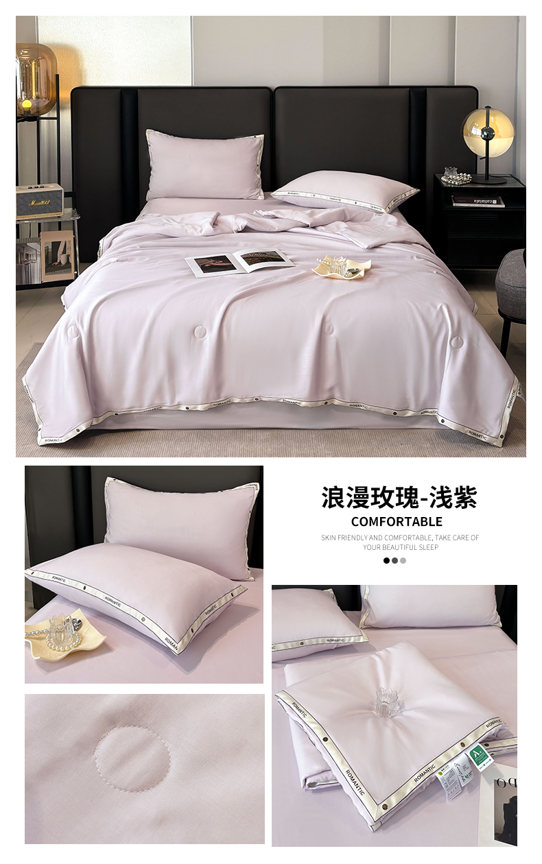 商品名称:梵蒂莎 2025新款赫本风莫代尔天丝夏被四件套 浪漫玫瑰-浅紫