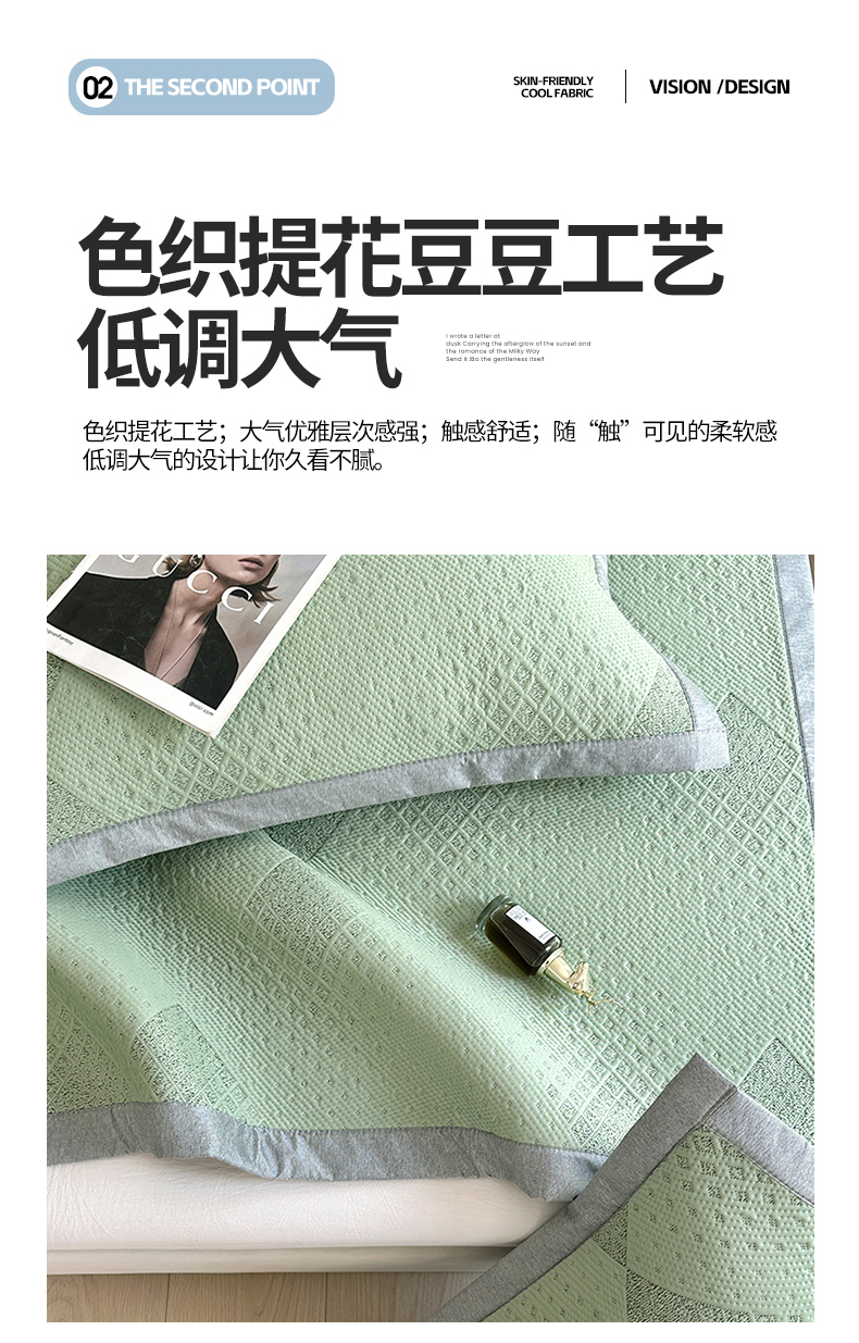 当前位置: 91家纺网 > 商品网购 > 床上用品 > 凉席 > 其他凉席 > 网客家纺 2025新款高分子PE(聚乙烯)色织提花豆豆席 茴香绿