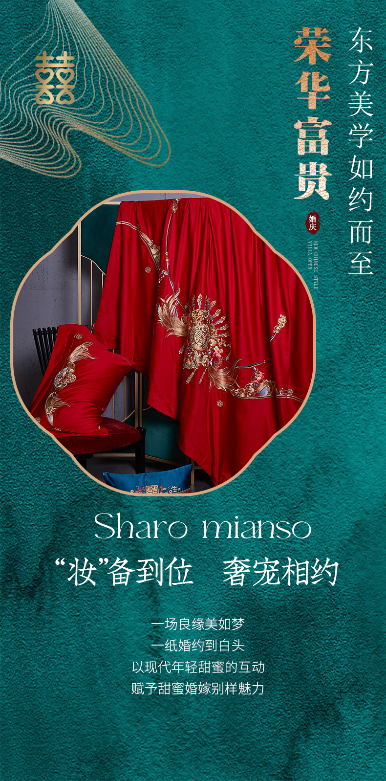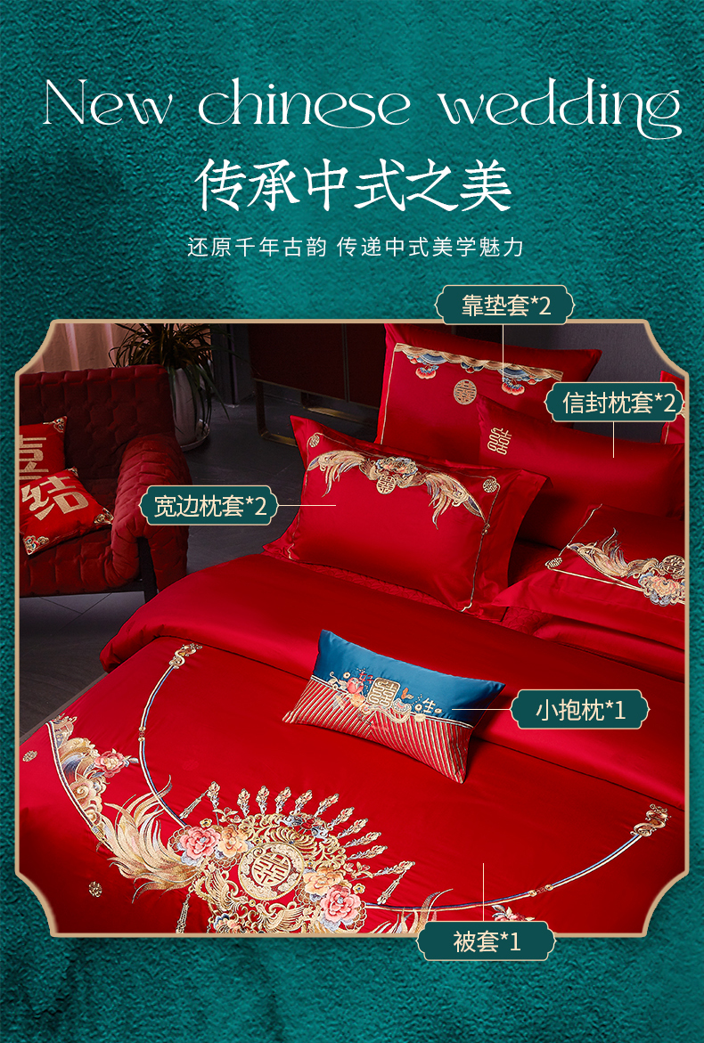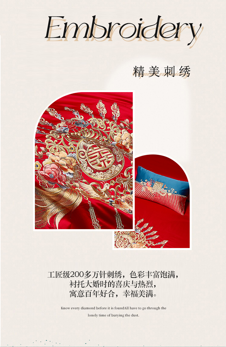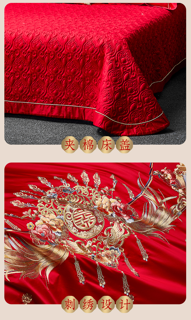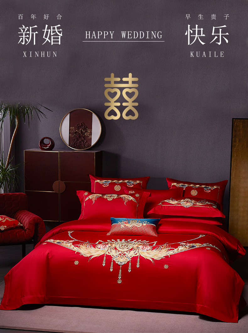 当前位置: 91家纺网 > 商品网购 > 床品套件 > 四件套 > 婚庆四件套 > 高大尚 2025新款长绒棉囍嫁系列四件套荣华富贵