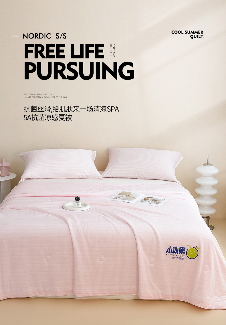 商品名称:慕木家纺 2025新款5A抗菌小冰果锦涤冰丝凉感夏被 小冰果-嫩粉