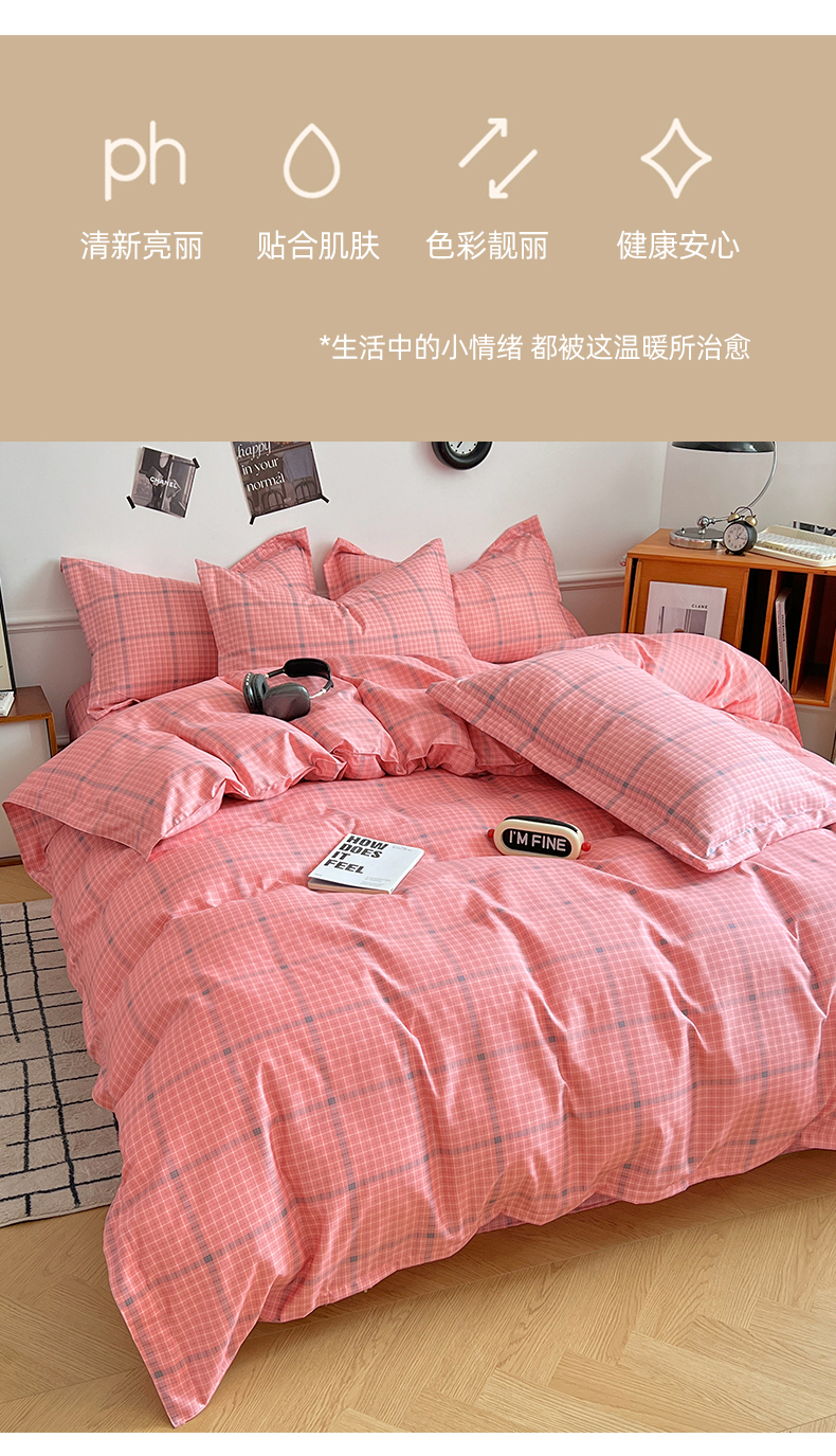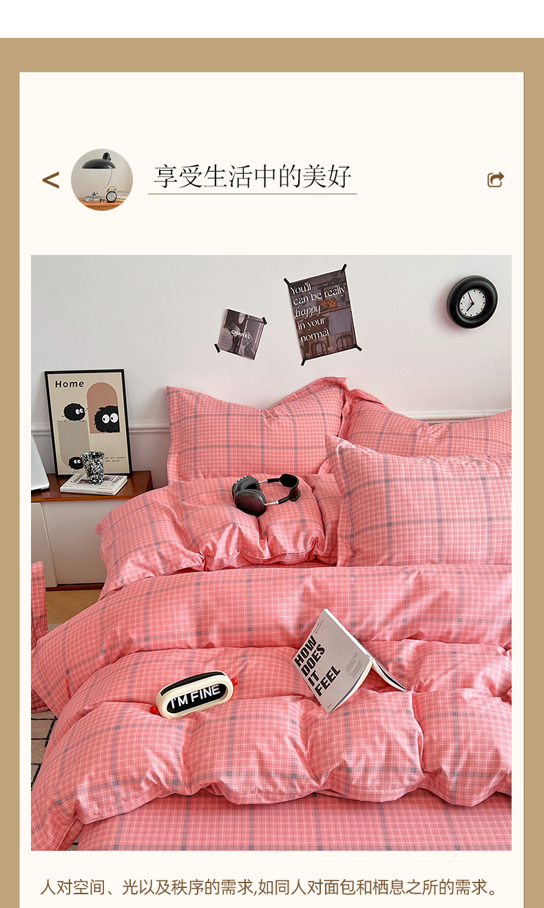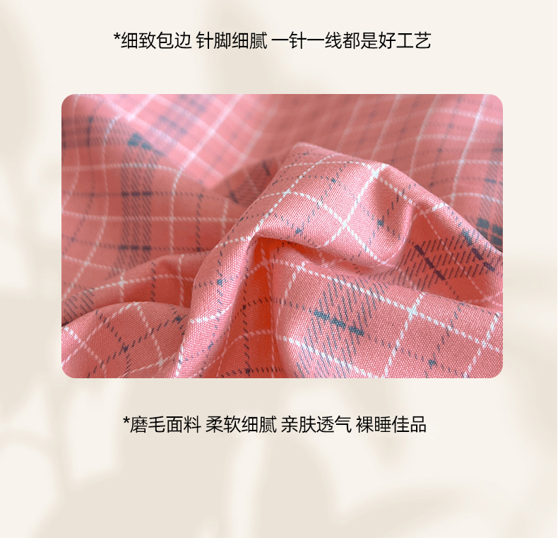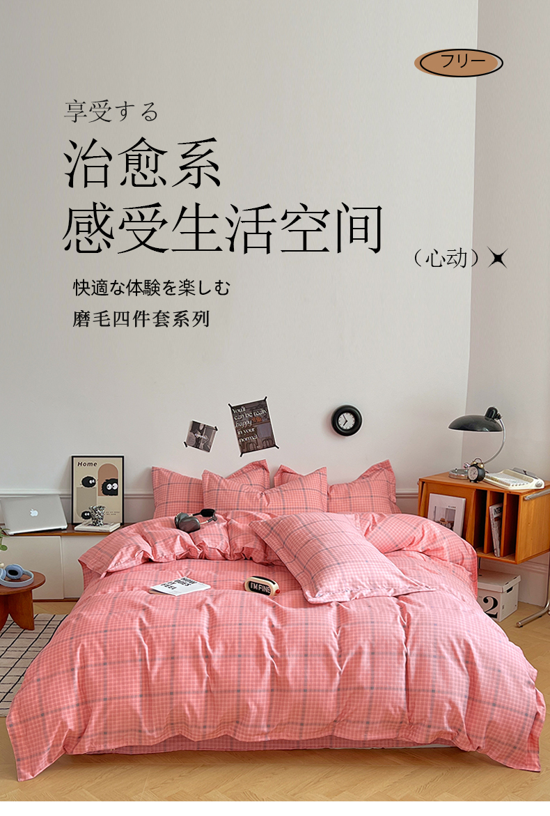 当前位置: 91家纺网 > 商品网购 > 床品套件 > 四件套 > 普通磨毛四件套 > 罗菲尼酒店用品 2025新款磨毛亲肤飞边款四件套 时尚粉格