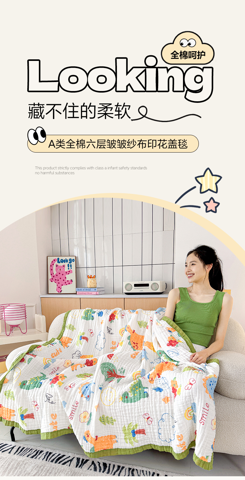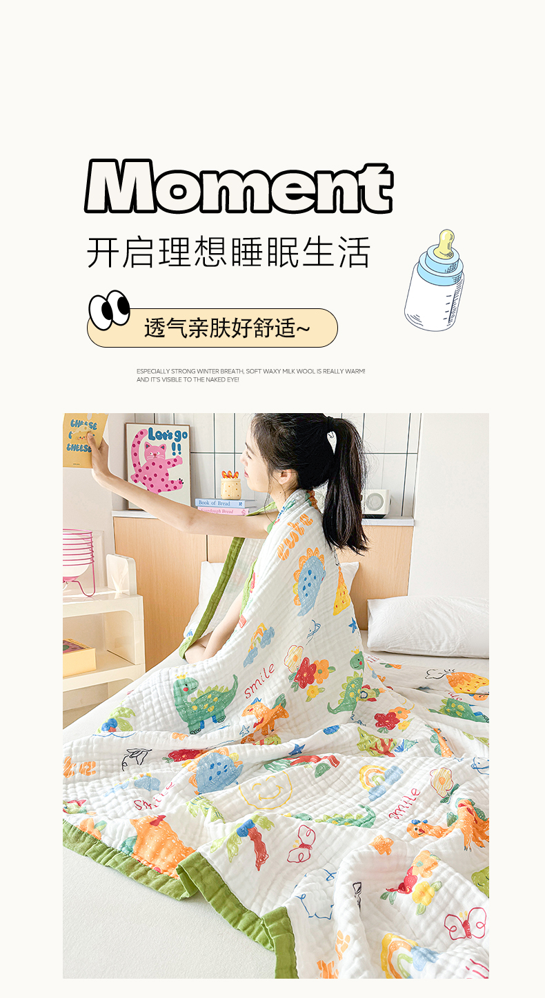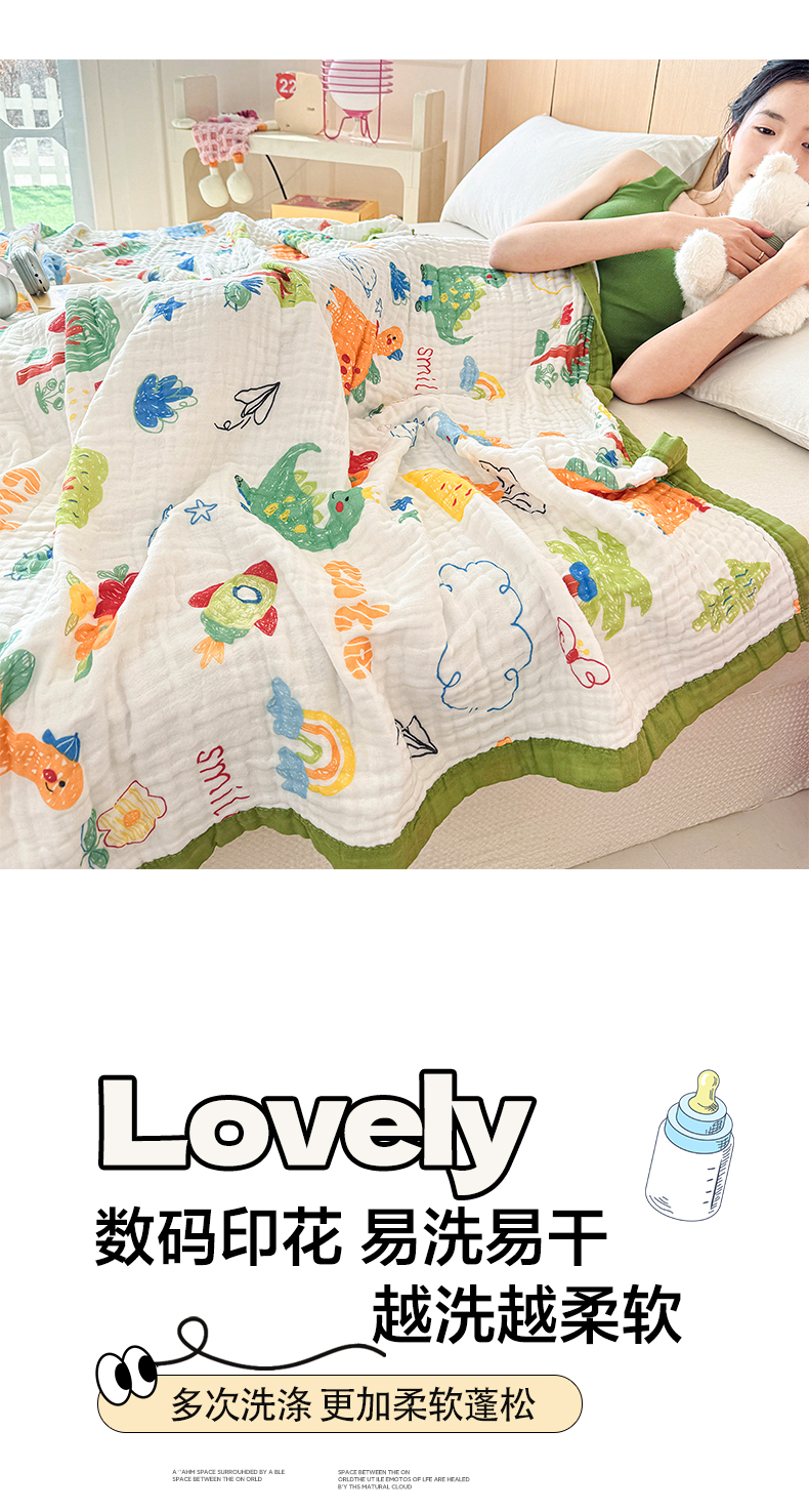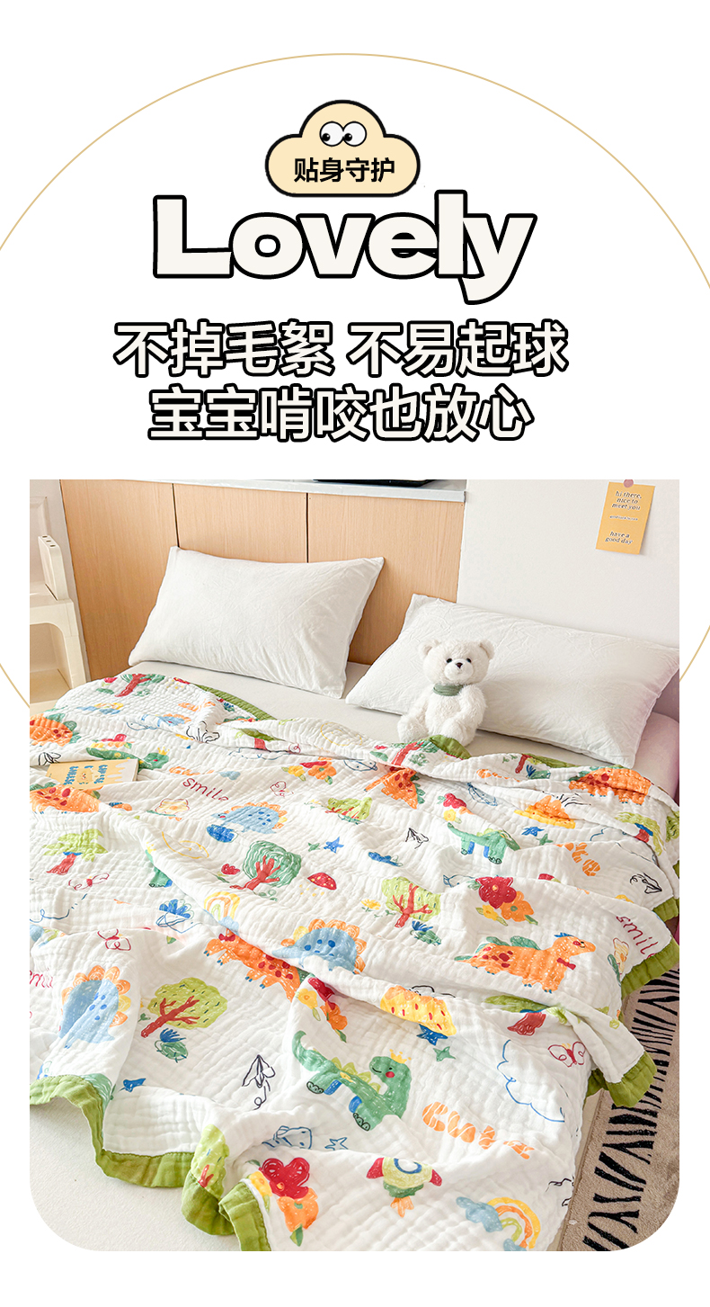 商品名称:棠薇家纺 2025新款全棉六层皱皱纱婴幼毯泡泡纱印花盖毯包被浴巾 恐龙乐园